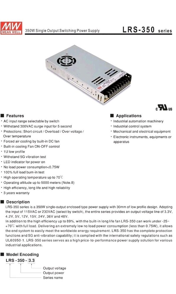 Mean Well LRS-350-24 Power Supply Switching Unit 350.4W