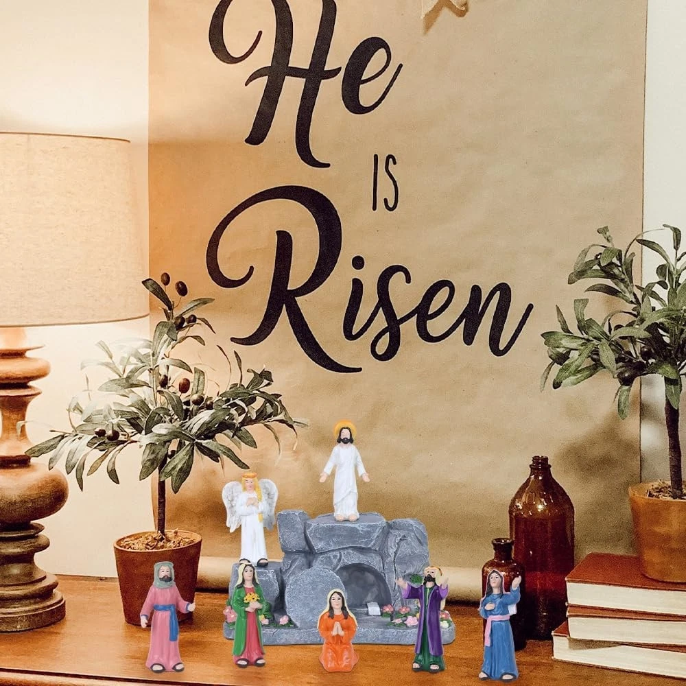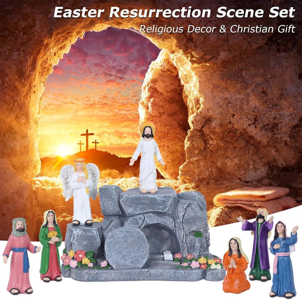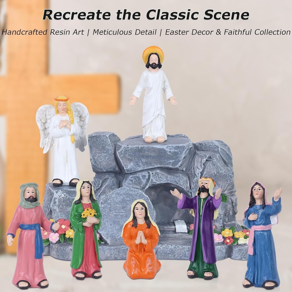 Free eBay listing template designed by dewiso.com MEETYAMOR Religious Easter Decorations for Home, 8 PCS Resin Jesus Resurrection Scene Set with Empty Tomb for Christian Easter Decor, He is Risen Nativity Scene for Tabletop Mantel Tray Shelf Church FREE AND FAST SHIPPING! About this item ✝️【Lifelike Resurrection Storytelling】 This complete 8-piece easter home decor set vividly captures the Jesus' resurrection Scene—from the risen Jesus, messenger angel, five devoted followers, and the iconic empty tomb (with rolled-away stone). Each christian easter decor figure is poised with expressive reverence, from the draped robes to the gentle gestures of awe and hope, inviting you into the sacred moment when hope was forever restored. ⛪【Centerpiece for Meaningful Moments】 Whether placed as an Easter table focal point, a mantel display adorned with spring greens, home altar or bookshself, this resurrection scene set transforms spaces into sacred pauses. Its design invites contemplation during morning devotion, family gatherings, or seasonal celebrations—blending seamlessly with your home other he is risen decor while holding spiritual presence. ✝️【Celebrate Easter's Heartfelt Promise】 This religious easter decor designed to honor the season's true meaning, turns your home into a gentle reminder of resurrection joy. From the empty tomb decor's quiet to the figures' reverent poses, it weaves peace, hope, and spiritual warmth into your Easter traditions—making each glance a moment of grateful reflection. ✝️【Premium Resin Craftsmanship】 Each pieces meticulously crafted from durable resin material, The surface of the empty tomb is meticulously carved to showcase a three-dimensional, lifelike rock texture, delicate floral accents with rugged cave details. Religious easter decorations designed to be both heirloom-strong and gently expressive, this set honors the sacred story through materials made to last through seasons of reflection. 🎁【A Meaningful Gift of Blessing】 More than a gift, it's a heartfelt prayer in physical form. Perfect for Easter, baptisms, or nativity faith milestones, this set conveys blessings of “Peace, Hope, and God's Love” to Christian friends and family. It's a thoughtful and spiritually resonant present that strengthens bonds through shared faith. Product We offer a 30-Day Return Policy on items which you are not completely satisfied with. You have the option for a full-refund or an exchange of the item. No returns are available on items shipped outside of the US . Shipping We offer Free Shipping to the US and ship within 2 business days of payment, usually sooner. We use UPS express shipping. That's why your products are usually delivered within 3 days . Contact We try our very best to make sure every customer is completely satisfied. If there's a problem , message us! We're happy to help. 24/7 live chat available.