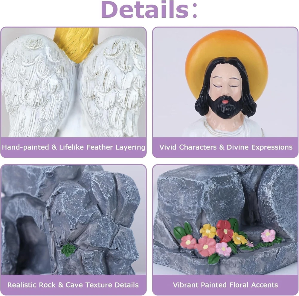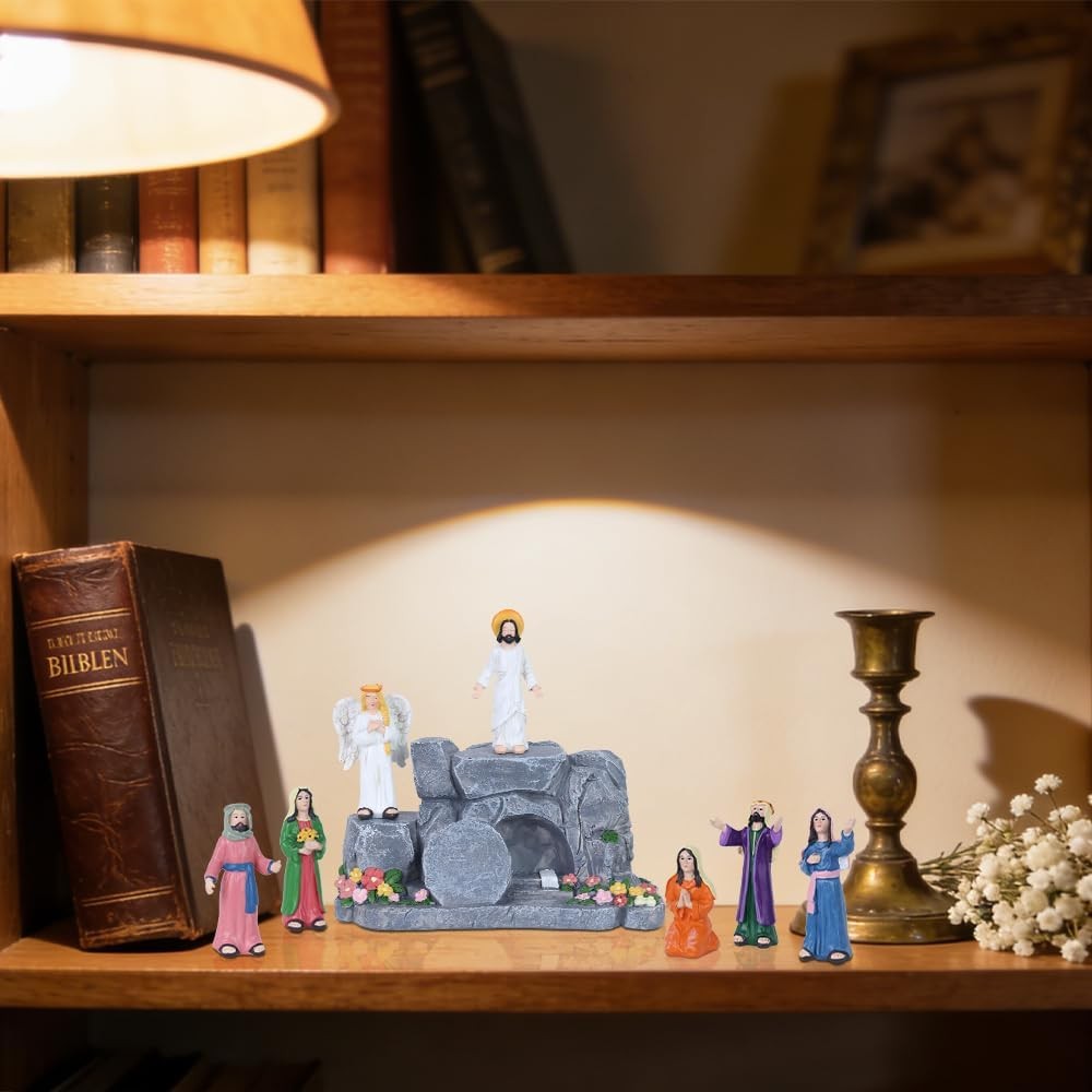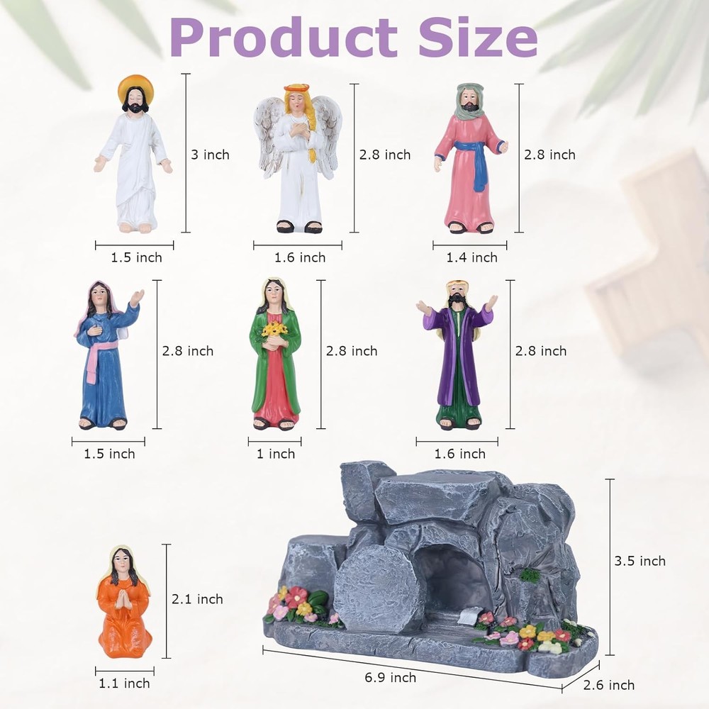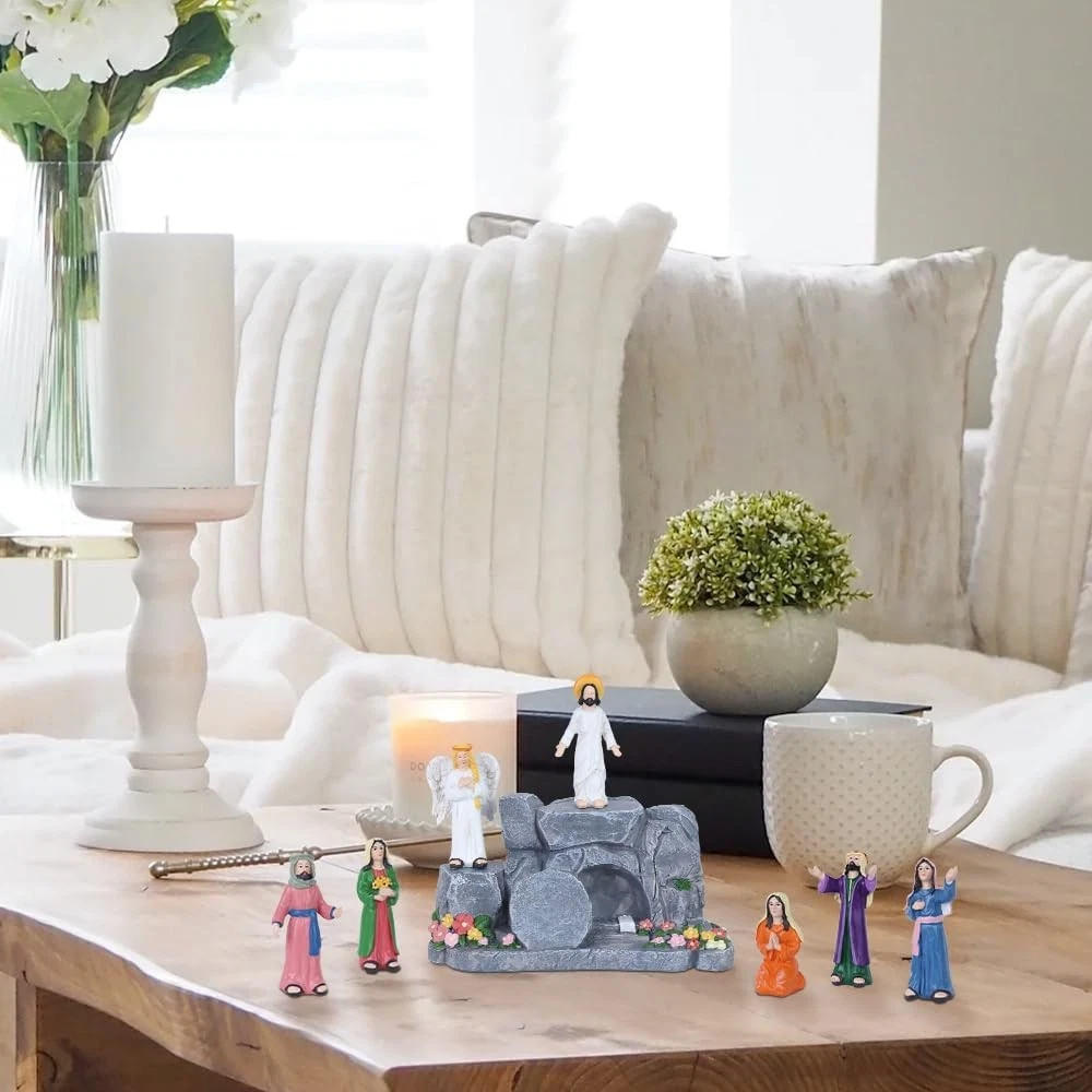 Free eBay listing template designed by dewiso.com MEETYAMOR Religious Easter Decorations for Home, 8 PCS Resin Jesus Resurrection Scene Set with Empty Tomb for Christian Easter Decor, He is Risen Nativity Scene for Tabletop Mantel Tray Shelf Church FREE AND FAST SHIPPING! About this item ✝️【Lifelike Resurrection Storytelling】 This complete 8-piece easter home decor set vividly captures the Jesus' resurrection Scene—from the risen Jesus, messenger angel, five devoted followers, and the iconic empty tomb (with rolled-away stone). Each christian easter decor figure is poised with expressive reverence, from the draped robes to the gentle gestures of awe and hope, inviting you into the sacred moment when hope was forever restored. ⛪【Centerpiece for Meaningful Moments】 Whether placed as an Easter table focal point, a mantel display adorned with spring greens, home altar or bookshself, this resurrection scene set transforms spaces into sacred pauses. Its design invites contemplation during morning devotion, family gatherings, or seasonal celebrations—blending seamlessly with your home other he is risen decor while holding spiritual presence. ✝️【Celebrate Easter's Heartfelt Promise】 This religious easter decor designed to honor the season's true meaning, turns your home into a gentle reminder of resurrection joy. From the empty tomb decor's quiet to the figures' reverent poses, it weaves peace, hope, and spiritual warmth into your Easter traditions—making each glance a moment of grateful reflection. ✝️【Premium Resin Craftsmanship】 Each pieces meticulously crafted from durable resin material, The surface of the empty tomb is meticulously carved to showcase a three-dimensional, lifelike rock texture, delicate floral accents with rugged cave details. Religious easter decorations designed to be both heirloom-strong and gently expressive, this set honors the sacred story through materials made to last through seasons of reflection. 🎁【A Meaningful Gift of Blessing】 More than a gift, it's a heartfelt prayer in physical form. Perfect for Easter, baptisms, or nativity faith milestones, this set conveys blessings of “Peace, Hope, and God's Love” to Christian friends and family. It's a thoughtful and spiritually resonant present that strengthens bonds through shared faith. Product We offer a 30-Day Return Policy on items which you are not completely satisfied with. You have the option for a full-refund or an exchange of the item. No returns are available on items shipped outside of the US . Shipping We offer Free Shipping to the US and ship within 2 business days of payment, usually sooner. We use UPS express shipping. That's why your products are usually delivered within 3 days . Contact We try our very best to make sure every customer is completely satisfied. If there's a problem , message us! We're happy to help. 24/7 live chat available.