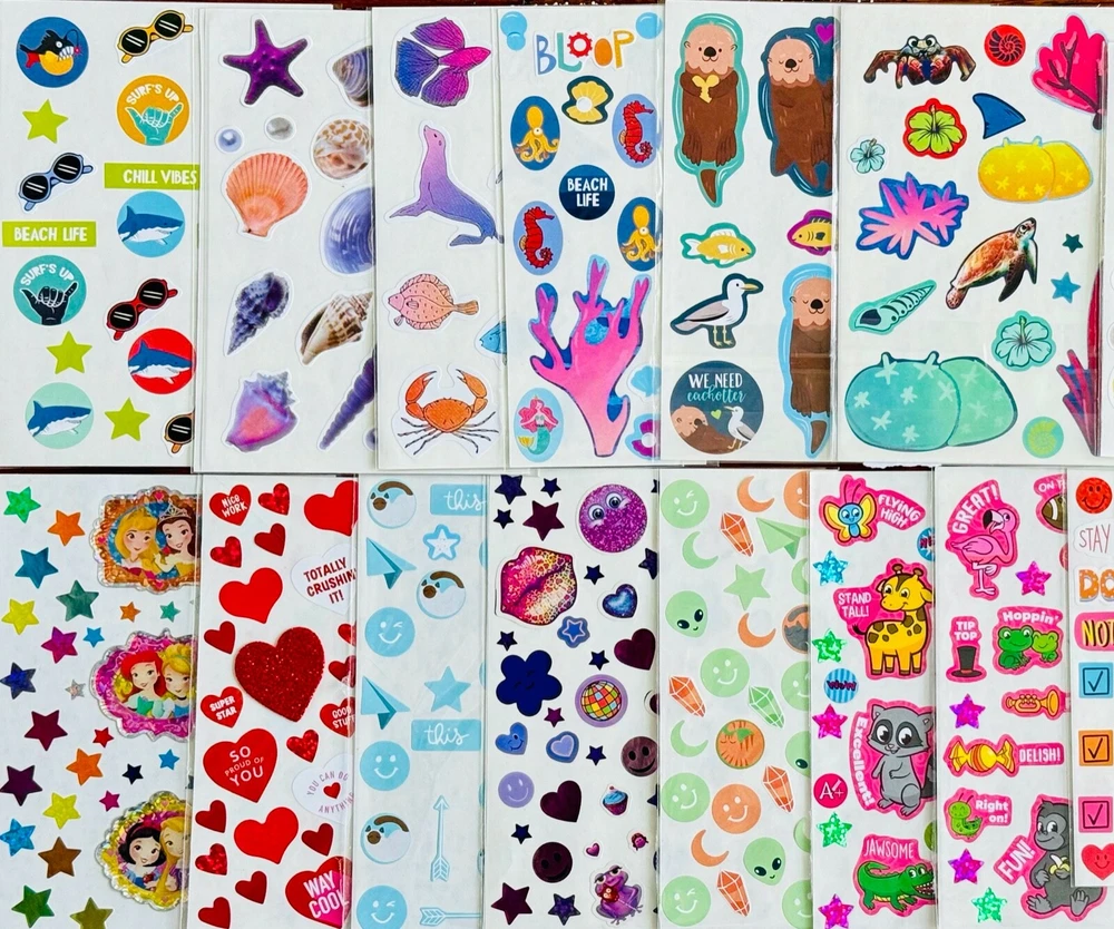 All stickers are BRAND NEW | Still in their original packaging! Mixed Sticker Lot | The Ultimate Kit | Qty. 800+ Stickers | High Quality Only! Fun Assortment of Puffy, Scrapbook, Cartoons, Bubble, Pop Up Stickers Packs For Everyone! You will receive 38+ Sticker Sheets of beautiful colorful assortment. I have included a large variety of pictures of the assortment available. The pictures give you an idea of what you will be receiving. Please Note: You will not receive everything pictured. Please contact me with any special requests. This HUGE Variety of fun designs stickers can be used in parties, classroom, school and home, good for reward for students, potty training, adding inside a birthday card, game activities, entertaining toddlers, etc. Perfect Gifts for Kids & all Occasions: Can be given as a gift for kids, girls, boys, toddlers, teens, students, friends, and classmates, they will love it! Each package of stickers is a different style & theme with some lovely embellishments like rhinestones, ribbons, buttons and other 3D details that make these quality stickers look so unique!