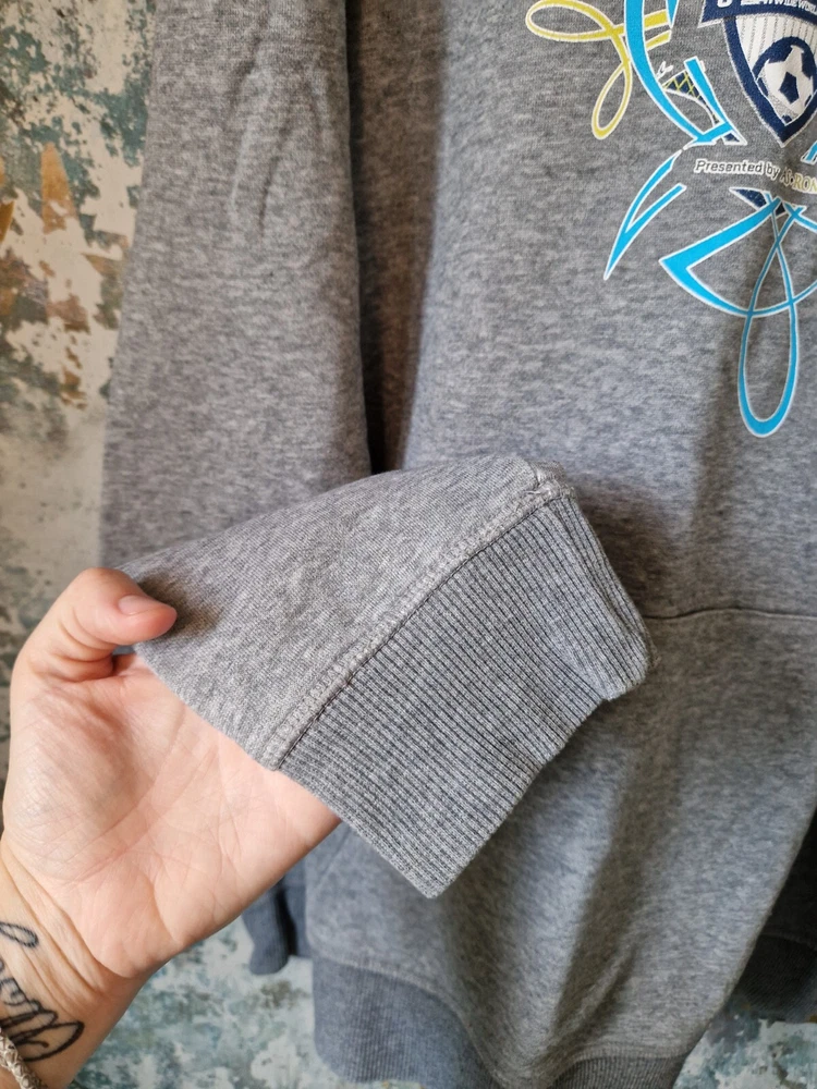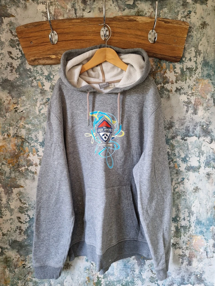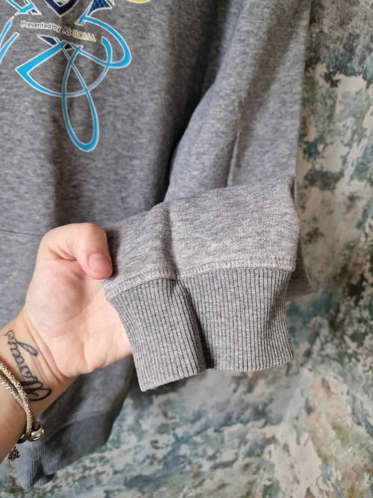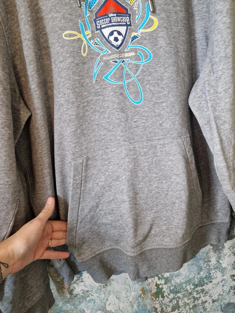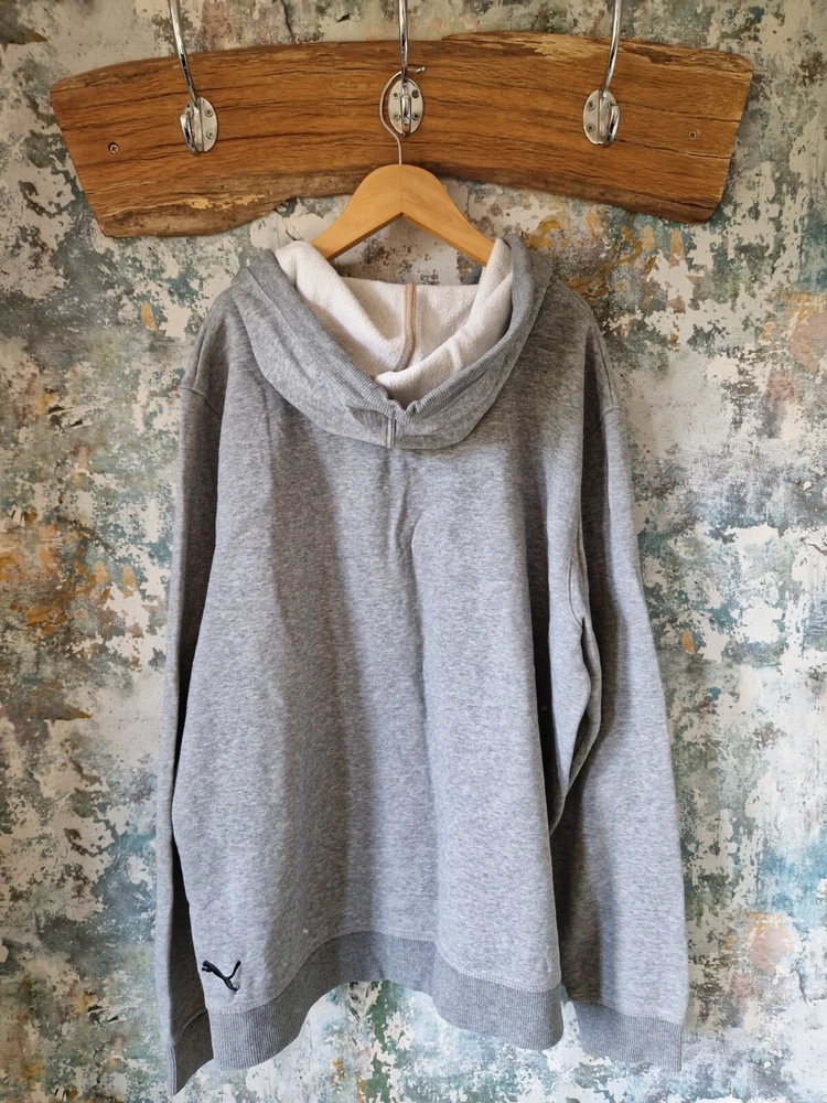 THIS IS A MENS GREY PUMA GRAPHIC DISNEY SOCCER SHOWCASE 90'S SWEATSHIRT HOODIE. THE MATERIAL IS COTTON AND POLYESTER. THE HOODIE WAS MADE IN CHINA. THIS IS A SECOND HAND PRE LOVED ITEM SO MAY SHOW SMALL FLAWS. NOTHING MAJOR WHICH I HAVE SEEN. HAS PLENTY OF WEAR LEFT. SHOULD FIT A MENS LARGE. INSIDE LABEL STATES A SIZE LARGE. PLEASE TAKE NOTE OF THE MEASUREMENTS BEFORE PURCHASING. I HAVE ADDED MEASUREMENTS FOR A MORE ACCURATE SIZING: PIT TO PIT MEASURES - 23 INCHES. TOP OF SHOULDER TO BOTTOM OF SWEATSHIRT MEASURES - 26.5 INCHES. UNDERARM TO BOTTOM OF CUFF MEASURES - 20.5 INCHES. ALL ITEMS ARE POSTED USING A TRACKED SERVICE. CHECK OUT MY EBAY FOR MORE GREAT ITEMS. B14