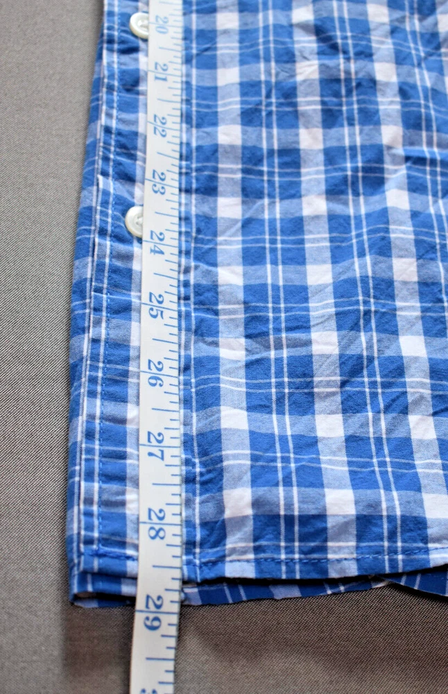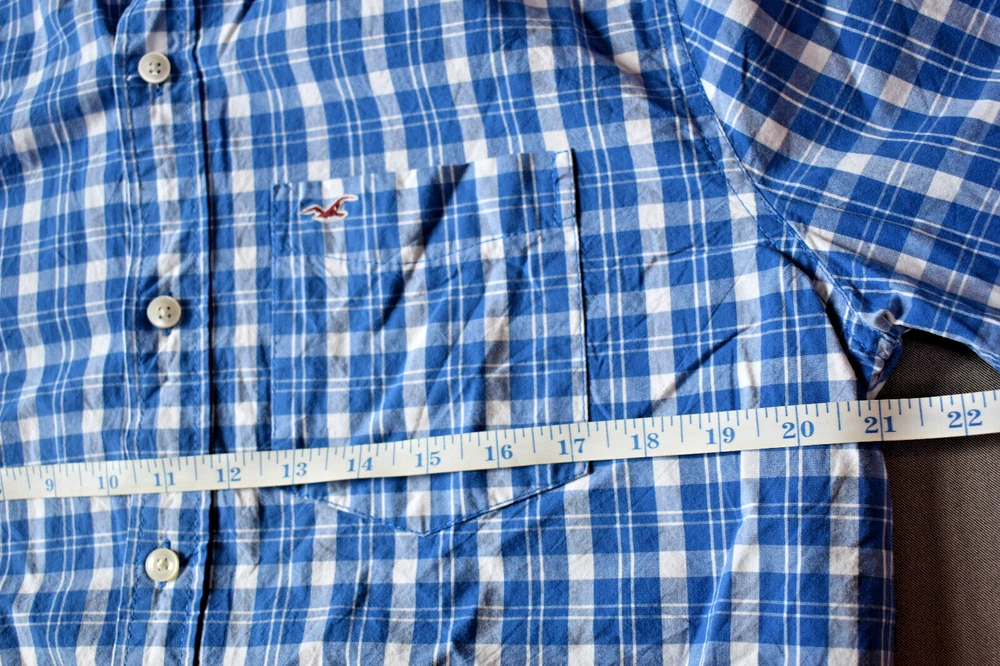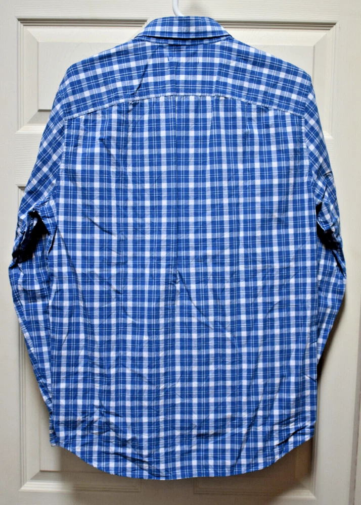 This item is a Men's Hollister long sleeve collared plaid shirt, size Medium. This item is preowned but is in fantastic condition with very little sign of being worn. This item comes from a smoke-free home and has no stains, snags, or rips. Rest assured we take pride in an honest description of our items. Please see photos for measurements. If there are any other questions please feel free to ask and we'll be happy to get back to you. Shipping/handling of this item is $6.00, sorry we only ship to the continental United States. After sale, your item will be prepared and shipped within 3 working days using USPS Ground Advantage. Thank you for looking at our item.