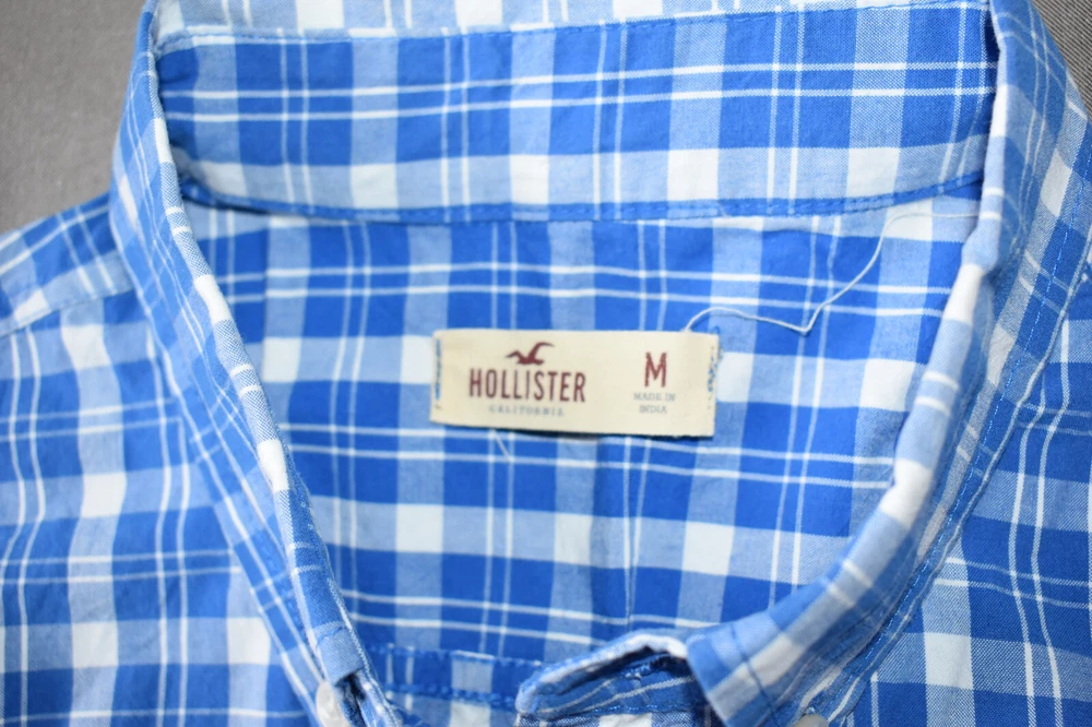 Department: Men Color: Blue Collar Style: Button-Down Type: Button-Up Seller Notes: “Pre-owned, great condition” Pattern: Plaid Material: Cotton Size Type: Regular Brand: Hollister Size: M Sleeve Length: Long Sleeve
