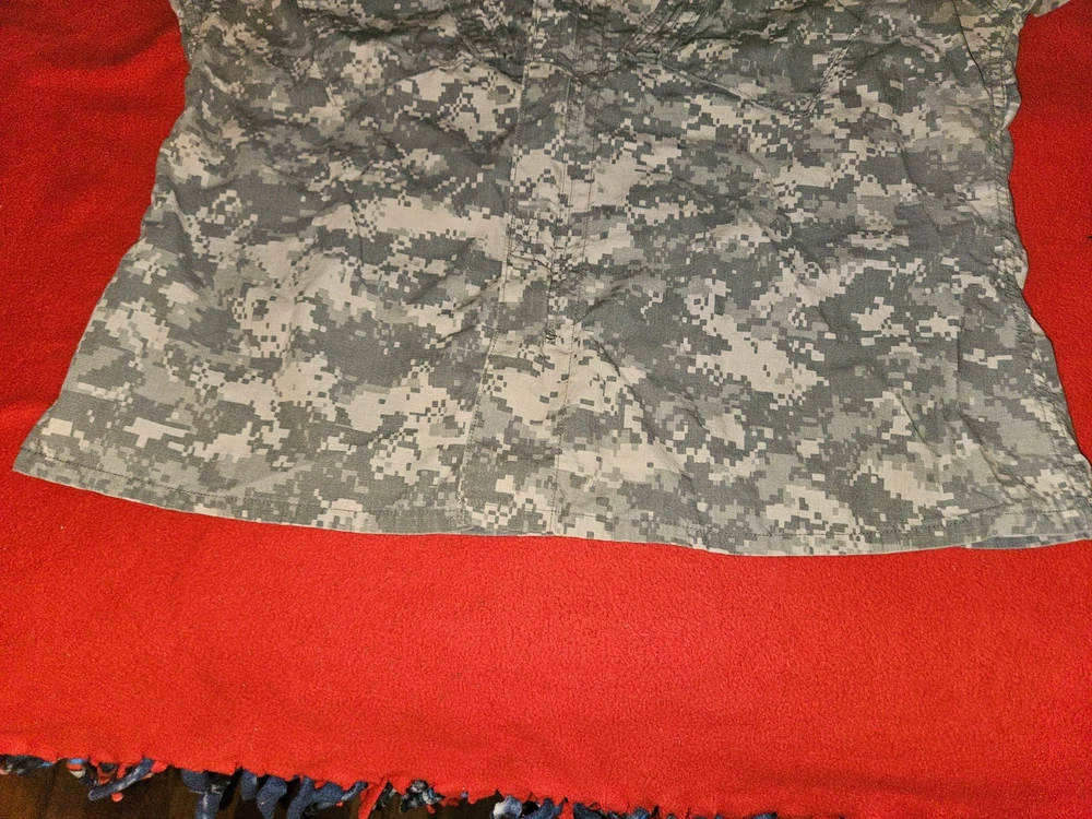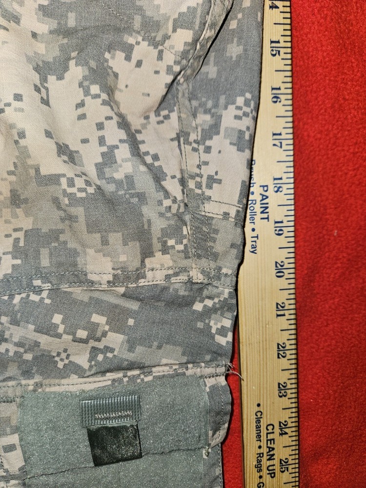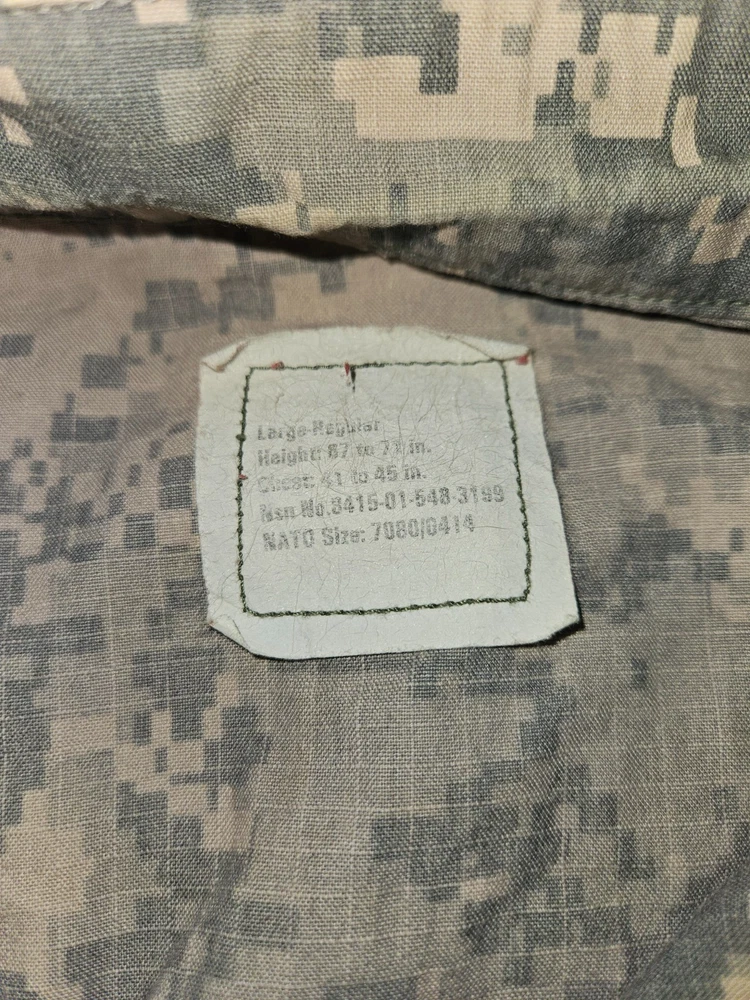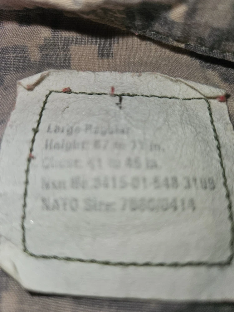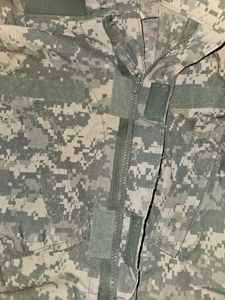 MEN'S LARGE CAMO U.S. ARMY MILITARY COMBAT UNIFORM JACKET 41'' To 45'' CHEST 23'' SLEEVES OVERALL LENGTH FROM TOP OF SHOULDER TO BOTTOM IS 26'' DON'T SEE ANY RIPS THE VELCRO AND ZIPPER LOOKS GOOD PLEASE LOOK AT ALL PICTURES
