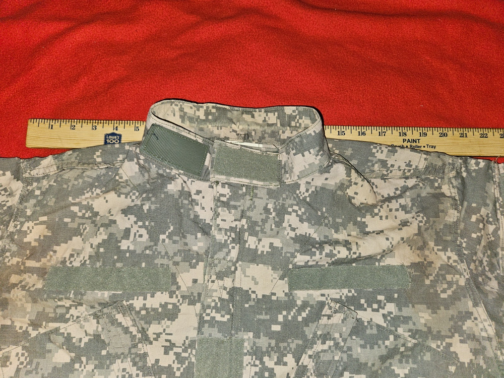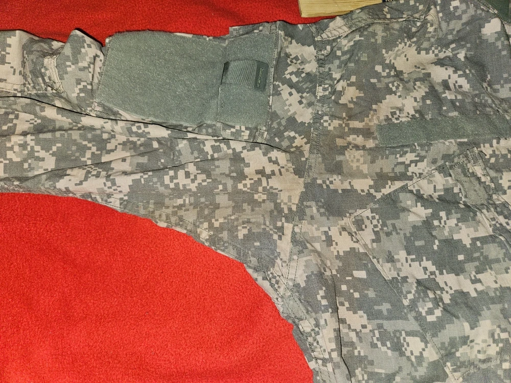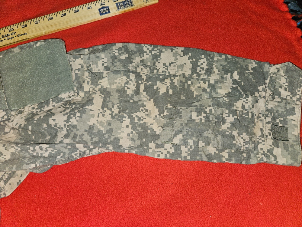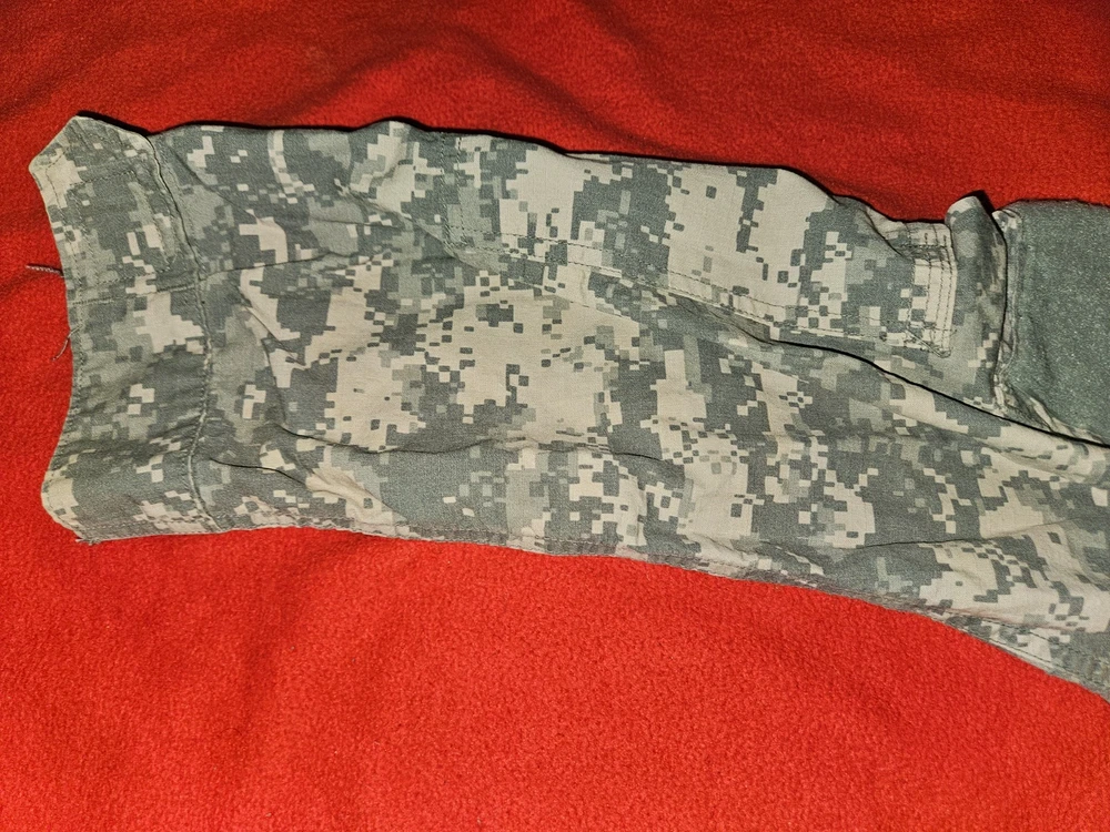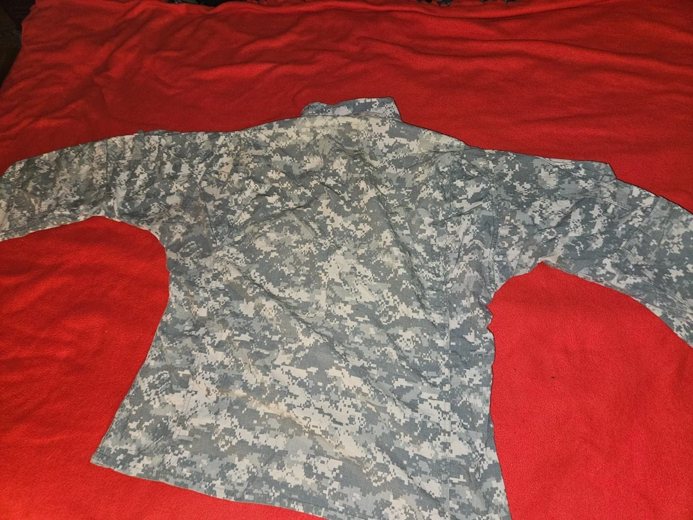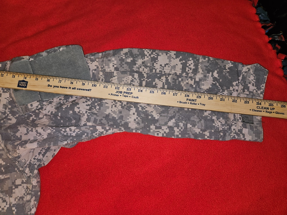 MEN'S LARGE CAMO U.S. ARMY MILITARY COMBAT UNIFORM JACKET 41'' To 45'' CHEST 23'' SLEEVES OVERALL LENGTH FROM TOP OF SHOULDER TO BOTTOM IS 26'' DON'T SEE ANY RIPS THE VELCRO AND ZIPPER LOOKS GOOD PLEASE LOOK AT ALL PICTURES