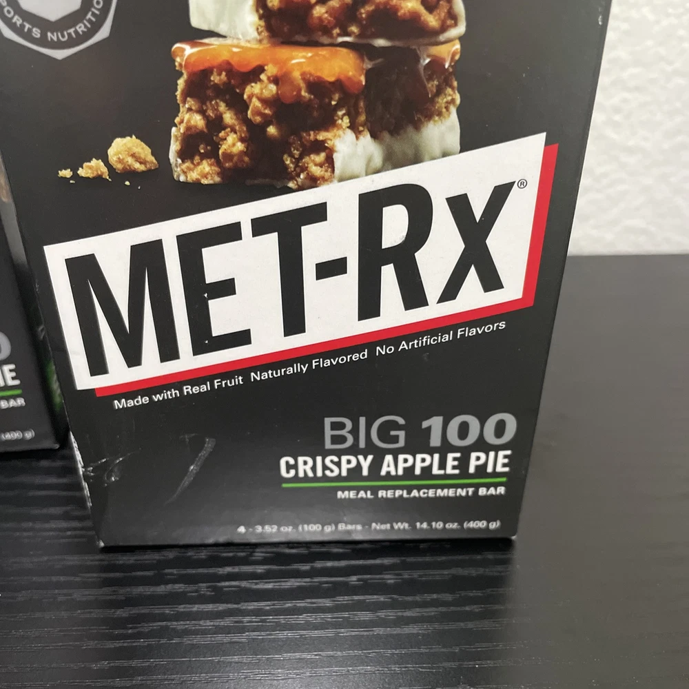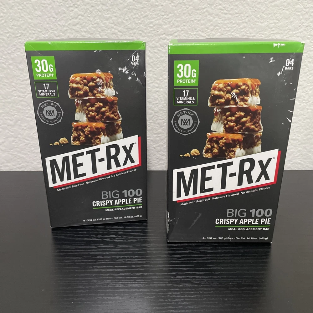 MET-Rx Big 100 Crispy Apple Pie Protein Bars 8Count (2Packs of 4 Bars).