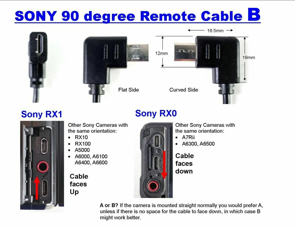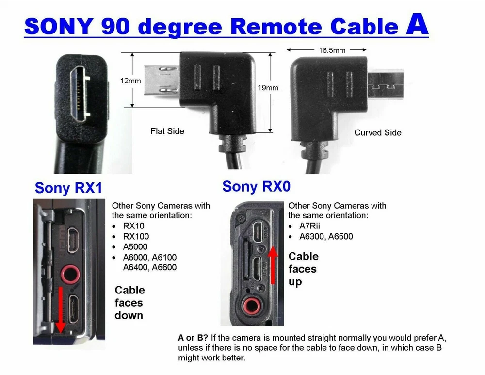 Cables to simultaneously fire two Sony cameras (with multiport) for 3D Stereo Photography You are getting two cables : Both cables have a 90 degree (right angle) multiport end, that you insert in the camera's multiport plug. One cable is 14" (35 0mm) long with a male 2.5mm plug The other cable is 10" (250mm) with a female 2.5mm plug The orientation of the male cable is B The orientation of the female cable is A (I also have another pair with A and A orientations, see my other listings) To fire a pair of cameras, just attach each cable to the cameras and connect the two cables. Most Sony cameras these days have multiports so these cables will work. I personally use RX0, RX1, RX10, RX100 and A6000. Once the cameras are connected, you can fire the pair using one of the camera's shutter button. I also have other accessories for stereo photography with Sony cameras. Click at my other items and search for Sony. Also for other cameras. Twinning cameras for 3D is one of my specialties. Please see my other ebay listings for similar items I buy/sell/service 3D photography equipment I sell on consignment. Most likely this is a consignment item. If you like the presentation and the sale prices, I could be selling YOUR items too! If you have any questions regarding this item, your purchase, or stereo photography in general, do not hesitate to contact me! I have taking 3D pictures since 1988. Combining Shipments : If you want me to combine shipments , wait until all the auctions close or put all your items on your cart and then request an invoice . I do not require immediate payment but if you pay for something, I have to ship within 24 hours. Please do not pay excessive postage and then ask for a refund (I will do it but will have to keep 10% which is what ebay charges me even on shipping). Bid/buy with confidence : If you have a problem with your purchase, please let me know as soon as possible and I will try to make it right. Please do not leave non-positive feedback (including neutral) or anything less than 5 star rating without contacting me first. I will do my best to resolve any problems . I accept 30 day returns for all the items that I sell. I try to describe things accurately but I might make a mistake here and there. I always leave positive feedback. I appreciate your business and I hope to see you back!