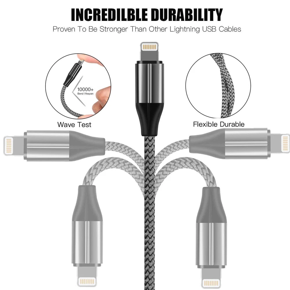 [MFi Certified] iPhone Charger 16ft, 5M/16 Foot Extra Long iPhone Charger Cable, Fast Charging Cord for Apple iPhone 11/11 Pro /11 Pro Max/XS/XS Max/XR/X/8/8 Plus/7/7 Plus/6/6 Plus/5/SE Ultra Long 15Ft Nylon Braided Charging CableSafe & ReliableSuperior construction inside and out to protect battery with stable charging current.Meets all Your Demands in daily life and Makes Your life More Convenient.Enhanced DurabilitySturdy nylon-braided fiber keep the usb cable safe and durable.Nylon Braided USB Cable is Made to last and Snugly Fits Your i-Devices with Precisely layer-Welded Connectors, More Flexible, Perfect Replacements for Your Original Cables Fast Charge & Data Sync USB Cable-The Speed of Data Transfer can Be up to 480Mbps-Charging Speed can Be up to 3Amps, Which Allows You to Charge Your Devices in a Faster WayReversible ConnectorThe Connector can Friendly let You insert the i-Device Freely Without Worrying About the Orientation.Just Insert the Connector the Right Way, Every Time! MFi Certified Lightning Cable: Each cable contains an authorization chip issued to ensure 100% compatibility with iPhone.Built with terminal and smart chip. connector with a lightning end, ensured safe charging for your devices. Enjoy fast data transfer, syncing and charging. Ultra Durable iPhone charger: Reinforced stress points with a long lifespan make iPhone cord many times more durable than anything else on the market. Remarkable iPhone Charger for Outdoor : Double shielding and tangle free design significantly enhance the interference protection to cope with any outdoor activities. The anodized connectors ensure superior functionality under heavy usage. MFi certification: Ensures complete high speed charge and sync compatibility with iPhone 11/11 Pro/X / XS / XS Max / XR / 8 / 8 Plus / 7 / 7 Plus / 6s / 6s Plu / 6 / 6 Plus / SE / 5S / 5C / 5. What You Get : iPhone cable (including 16 foot 1 Pack) with plenty long enough for many occasions, charging lightning devices in bedroom, sofa, kitchen, car and office with much less restricting on the length. Shipping from the USA All of our products are shipped from the USA, ensuring quick delivery to your destination. Payment We offer the following payment methods: PayPal, credit card, bank transfer, and eBay's secure payment system. Free Shipping & Free Returns Shipping within the USA is FREE. Additionally, any return is absolutely free for you. Risk-Free Purchase You have the option to return an item within 30 days without any justification. We cover the return shipping costs! Fast Shipping We ship immediately upon receipt of payment. Generally, the package is delivered within 2-3 days in the USA. If it takes longer, we will contact you. Quality and Costs Made in Europe, USA, China No customs fees or additional charges Total satisfaction guarantee Invoice with declared VAT available upon request in .pdf format Feedback Your feedback is very important to us. After you pay for your purchase, you will automatically receive positive feedback from us.