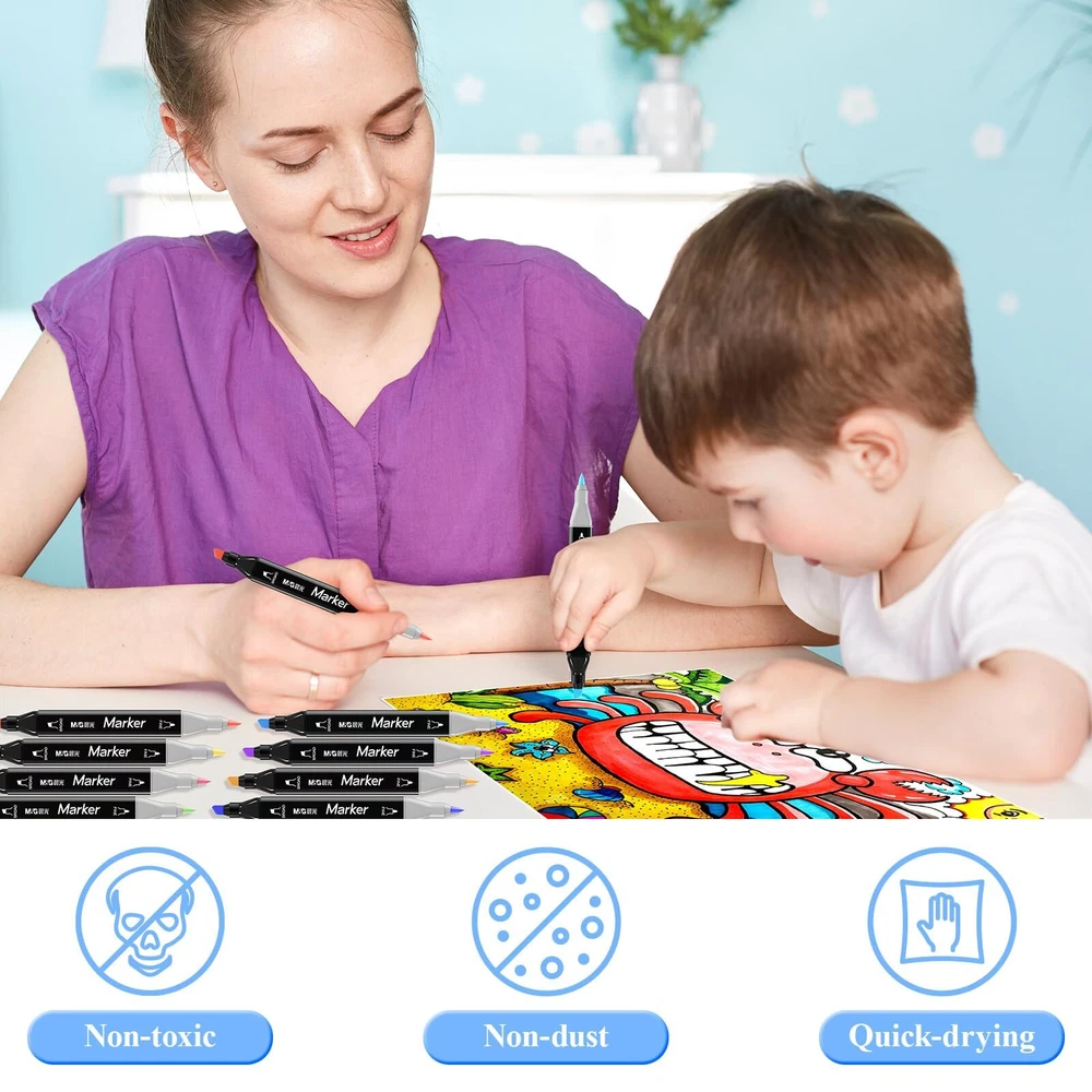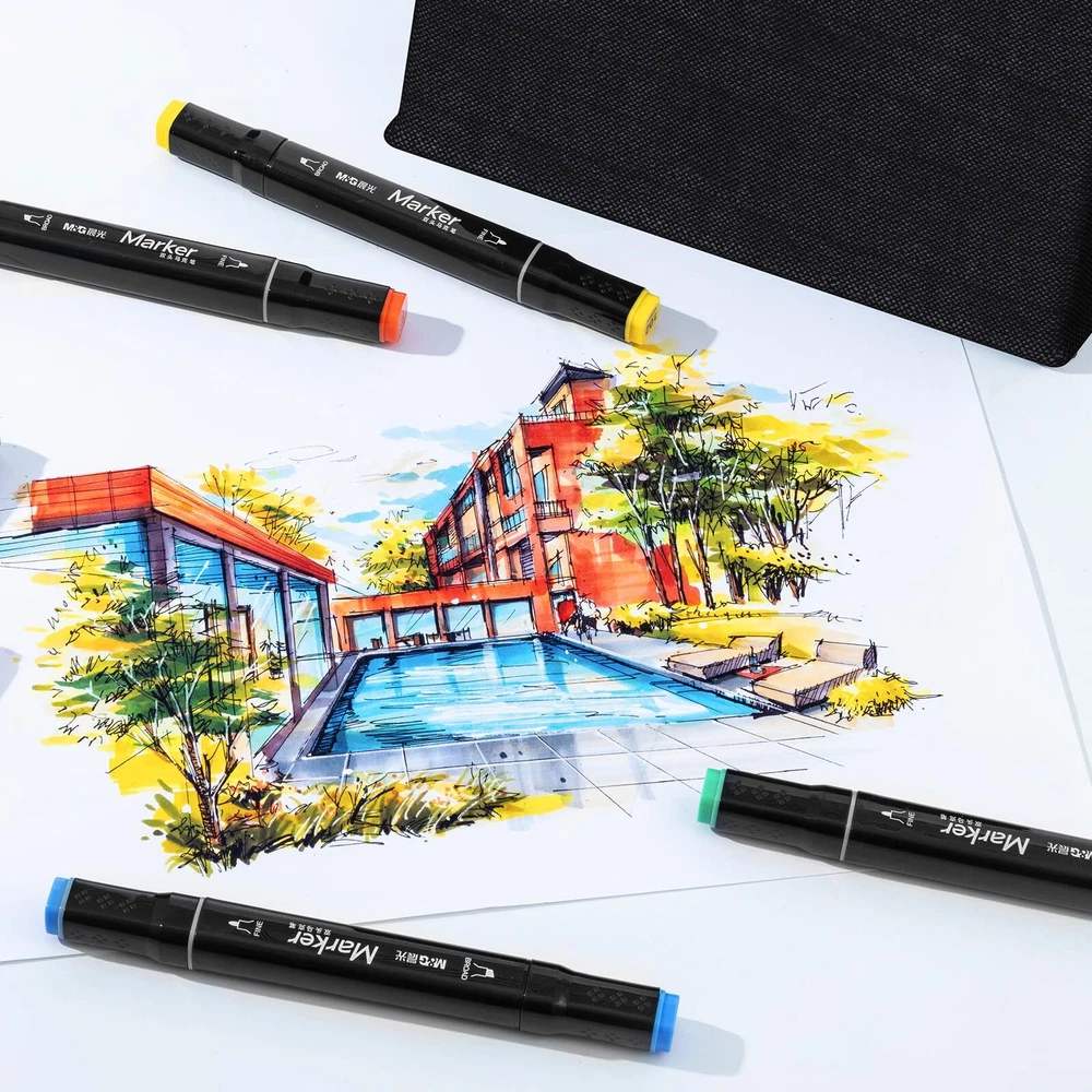 M&G 24 Colors Alcohol Based Markers , Dual Tip Permanent Art Markers Sketch Markers for Adult Kid Coloring Book, Illustration Painting Card Making (Classic) 24 Vibrant Colors: The alcohol markers set includes 24 different colors, providing a wide range of options for your artistic creations. From classic primary colors to vibrant secondary colors, these markers will help you bring your imagination to life. Dual Tip DesigTn: Each marker features a dual tip, allowing you to switch between a fine tip for detailed lines and a broad tip for filling in larger areas. This versatility makes them perfect for a variety of projects, including coloring books, drawing, and painting. Permanent and NoNn-toxic: These markers are made with alcohol-based ink, which is non-toxic and safe for use by adults and children. They are also permanent, meaning your artwork will not smudge or fade over time. Wide Application: These markers are perfect for a variety of projects, including coloring books, drawing, painting, card making, scrapbooking, and more. They are also great for classroom use, as they are safe for students to use. Color-Code Caps: Each cap have color-code caps for you can find right color easily. Perfect for sketching, calligraphy, coloring, crafting, highlighting, journaling. 24 Vibrant Colors: The alcohol markers set includes 24 different colors, providing a wide range of options for your artistic creations. From classic primary colors to vibrant secondary colors, these markers will help you bring your imagination to life. Dual Tip Design: Each marker features a dual tip, allowing you to switch between a fine tip for detailed lines and a broad tip for filling in larger areas. This versatility makes them perfect for a variety of projects, including coloring books, drawing, and painting. Permanent and Non-toxic: These markers are made with alcohol-based ink, which is non-toxic and safe for use by adults and children. They are also permanent, meaning your artwork will not smudge or fade over time. Wide Application: These markers are perfect for a variety of projects, including coloring books, drawing, painting, card making, scrapbooking, and more. They are also great for classroom use, as they are safe for students to use. Color-Code Caps: Each cap have color-code caps for you can find right color easily. Perfect for sketching, calligraphy, coloring, crafting, highlighting, journaling.
