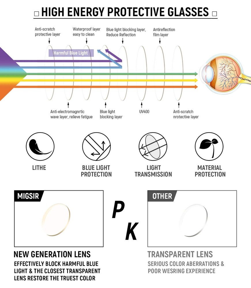 MIGSIR Blue Light Blocking Glasses for Computer Gaming, Fashion Fake Anti Eye Strain Eyeglasses for Women Men Anti Glare Blue Ray Glasses: Our blue light glasses effectively block harmful blue light emitted from various electronic screens. These blue light blocking glasses filter harmful light waves and UV 400, providing optimal eye protection. Reduce Eyestrain & Sleep Well: These non-prescription anti eye strain glasses are ideal for those who spend long hours in front of computer or phone screens. They help relieve eye strain and migraines, promoting better sleep. Flexible Frame: The frames of these blue-light glasses are made of extremely durable and lightweight materials. Their high quality ensures long-lasting use, making them perfect for computer screen protection. Various Colors: These fashionable clear glasses are designed for both women and men. Try them out and experience the benefits! No Worry Purchase: Customer satisfaction is our top priority. If you have any questions, our dedicated support team will do their best to assist you. Blue light glasses Shipping We offer FREE shipping on all orders! We ship within Three business days of payment, usually sooner. We use a selection of shipping services such as UPS, FedEx, USPS etc. We only ship to the lower 48 states, no APO/FPO addresses or PO Boxes allowed. Local pickups and combined shipping options are not provided at this time. Return You can return a product for up to 30 days from the date you purchased it. Any product you return must be in the same condition you received it and in the original packaging. Please keep the receipt. Feedback Customer satisfaction is very important to us. If you have any problem with your order, please contact us and we will do our best to make you satisfied. Contact Us If you have any queries, please contact us via ebay. We usually respond within 24 hours on weekdays. Please visit our eBay store to check out other items for sale! Thank you for shopping at our store.