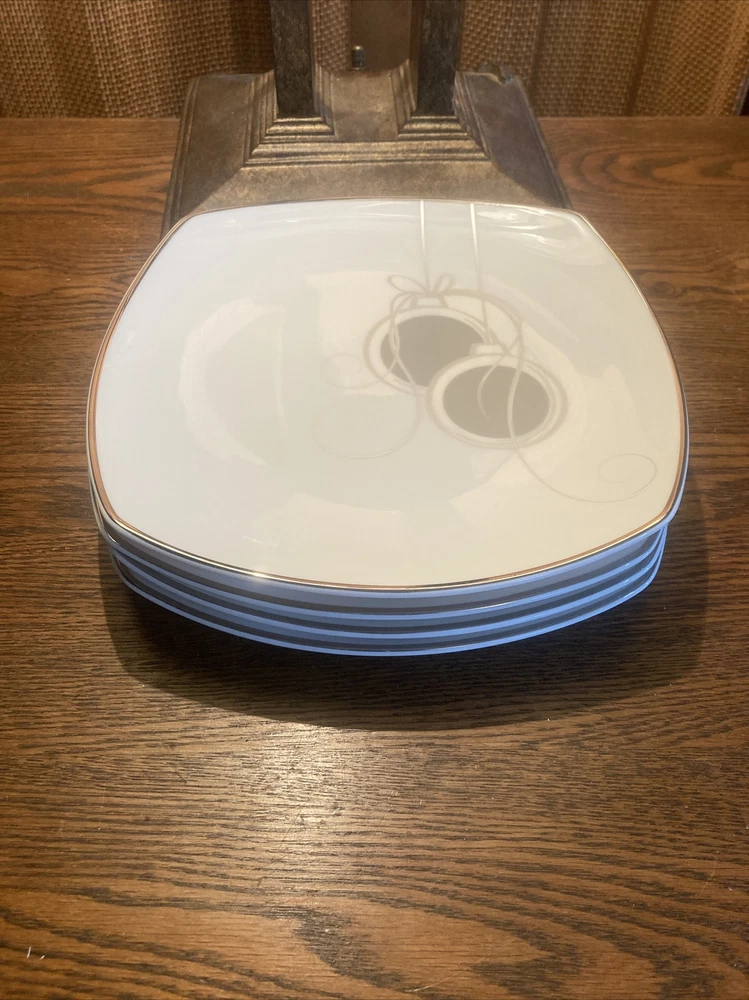 Mikasa Cameo Platinum Square Set of 2 Christmas Accent Salad Plates 8 1/2" Diameter New with Tags
