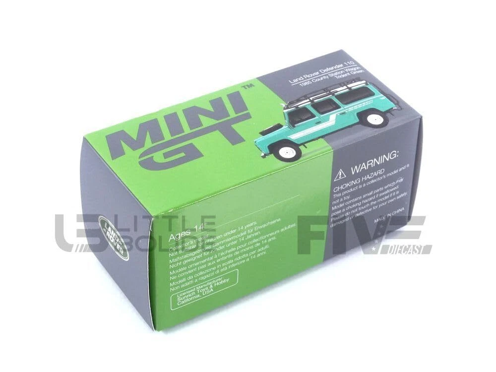 MINI GT 1/64 Land Rover Defender 110 1985 County Station Wagon, Trend Green,