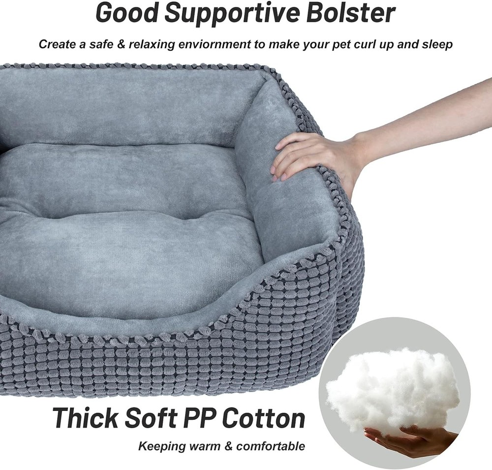 MIXJOY Dog S(20’’x 19’’x 6’’), Grey Product Details Item Weight: 2.23 pounds Manufacturer: MIXJOY Item Package Dimensions L x W x H: 11.65 x 9.84 x 2.8 inches Item Dimensions LxWxH: 20 x 19 x 6 inches Brand Name: MIXJOY Target Audience Keyword: house-cats, small-animal-pets, dogs, Cats, Dogs, Puppy, Pet Color: Grey Size: S(20’’x 19’’x 6’’) Material: Polyester Age Range Description: puppy Care Instructions: Machine Wash Number of Items: 1 Breed Recommendation: Cat, small dogs Product Dimensions : 20 x 19 x 6 inches; 2.23 Pounds Manufacturer : MIXJOY Brand: MIXJOY Special Feature: Non Skid Bottom Product Dimensions: 20"L x 19"W x 6"Th Size Details: size S is 20’’x 19’’x 6’’, sleeping area inside bolster: 14'' x 14'', this Small dog bed is perfect for small dogs and cats up to 15 lbs. It’s suitable for indoor & outdoor use. Arrives as a vacuum packed bed, easily unzip and let it inflate for up to 24 hours! Pet-Safe Materials: good Flannel material makes it super soft & cozy, and exterior is designed as corn kernel shape, filling with Flannel fabric makes it sturdy for long time use. Perfect for puppy's skin, keeping your pets have a comfortable sleep. Raised Rim Design: supportive raised sides of the rectangular dog bed create a safe & relaxing enviornment to make your dog and cat curl up, have fun, provide head and neck have a good support. Anti-Slip Bottom: keep the bed in position and keep your pets safe. The low front edge is easy for cats and small dogs to access. Washable Small Dog Bed: washing machine and dryer---Machine wash, gentle cycle. Tumble dry, low heat. We usually recommend hand washing. Easy care for the bed makes your pets are easier to keep a comfortable and clean sleeping space. If you have any issue of our products, please contact us directly and we are eager to rectify it!