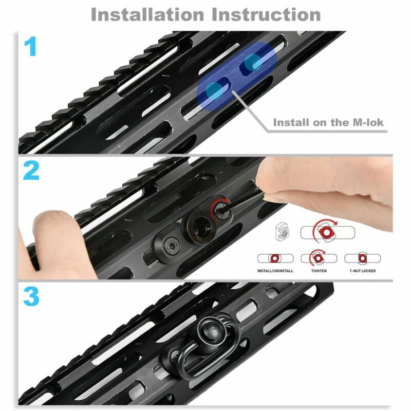 Meinuousa Your Best Online Business Partner M-LOK MLOK Quick Release 1.25" Sling Mount Push Button QD Sling Swivel Adaptor Specifications Type: Swivels Weight: 50 g Size: Reference size picture Features: Provide M-lok T-nuts, screws and assembly allen key for installation easily. Machined from mil-spec anodized aluminum alloy, beveled edges reduce snagging Lightweight, low profile design, mounts to all m-lok slots. Package Included: 4x QD M-lok Sling Mount 4 x Sling Swivel 4 x Wrench Payment Shipping Returns Contact Us About US - We accept the payment through :Credit, debit, and gift cards, Apple Pay, Google Pay, PayPal, and PayPal Credit. - Payment must be fulfilled within 4 days after the end of auction. - Please make sure your ebay address is correct. Or not, please correct it before payment. - If you are a big customer, Please contact with us about the item's PRICE and SHIPPING. - Your feedback & suggestion is deeply appreciated, thanks. 1. Please make sure your address in ebay is correct. 2. We will only follow your address listed in the ebay orders for the shipment. 1. We can exchange the item within 30 days after you received it if it is defective. 2. Returned item must have all original packaging and accessories. 3. Buyer are responsible for the returning shipping costs. 1. We greatly appreciate your POSITIVE feedback. 2. Negative or Neutral feedback does not resolve any underlying issues that you may be experiencing as a buyer. 3. Any question or unsatisfaction please contact us with ebay message, we will sincerely solve for you. Feedback is very important to us, if you are satisfied with us, please leave us 5 star positive feedback to us. If you h have any problem, please contact us first BEFORE you give us neutral or negative feedback, so we can try our best to help you solve your problem. All rights reserved.