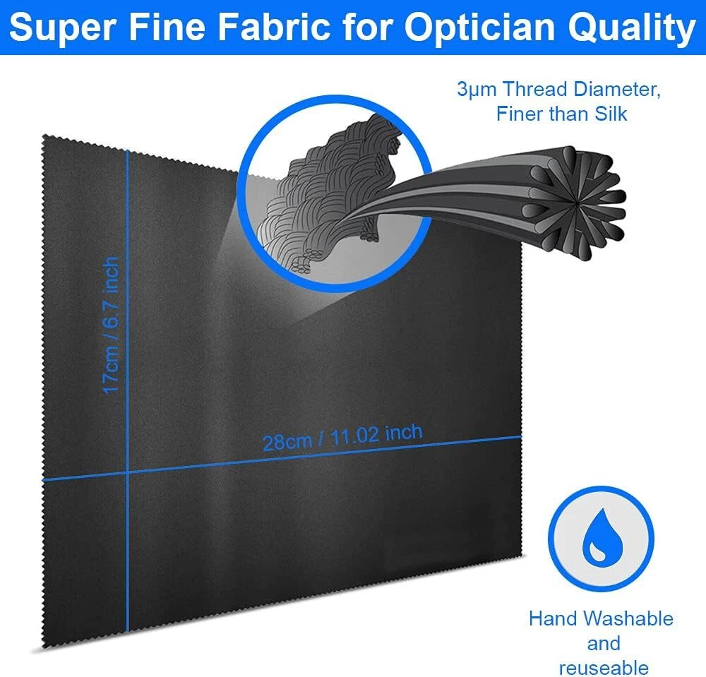 MMOBIEL 6 Pack Microfiber Cleaning Cloths Great for Eyeglass Lens Black Product Details Package Dimensions: 6.18 x 3.82 x 0.39 inches Item Weight: 0.634 ounces Manufacturer: MMOBIEL Country of Origin: China Color: Black Brand: MMOBIEL Material: Microfiber Material: Made of Extremely soft tightly woven microfiberMaterial that allows to remove and absorbs dust, Fingerprint and dirt from almost any surface with out scratching it. Will not leave any lint, mark, streak, or grease on the surface. Washable: Can be washed and reused multiple times. Ensures a long lasting cleaning cloth that can be used multiple times. Absorbs fluids easily and removes dust, oil, smudges, fingerprints and dirt scratch free from any delicate surface Wide Application: These Microfiber Cleaning Cloths are great to be used for Cleaning Eyeglasses, Sunglasses, Computer Screens, Cell Phones, Tablet Screens, Car interior, Car Accessories, Jewelry, Camera Lenses, Action Camera's, etc. Set Contains: 6 Strong, Smooth As Silk, Microfiber Cleaning Cloths in the size: 18 x 15cm / 7 x 6 inch; Color: Black Product provided by MMOBIEL - We always try our best to exceed your expectations at every turn. Join the ever growing list of satisfied customers and discover the difference with MMOBIEL. Material: Made of Extremely soft tightly woven microfiberMaterial that allows to remove and absorbs dust, Fingerprint and dirt from almost any surface with out scratching it. Will not leave any lint, mark, streak, or grease on the surface. Washable: Can be washed and reused multiple times. Ensures a long lasting cleaning cloth that can be used multiple times. Absorbs fluids easily and removes dust, oil, smudges, fingerprints and dirt scratch free from any delicate surface Wide Application: These Microfiber Cleaning Cloths are great to be used for Cleaning Eyeglasses, Sunglasses, Computer Screens, Cell Phones, Tablet Screens, Car interior, Car Accessories, Jewelry, Camera Lenses, Action Camera's, etc. Set Contains: 6 Strong, Smooth As Silk, Microfiber Cleaning Cloths in the size: 18 x 15cm / 7 x 6 inch; Color: Black Product provided by MMOBIEL - We always try our best to exceed your expectations at every turn. Join the ever growing list of satisfied customers and discover the difference with MMOBIEL.