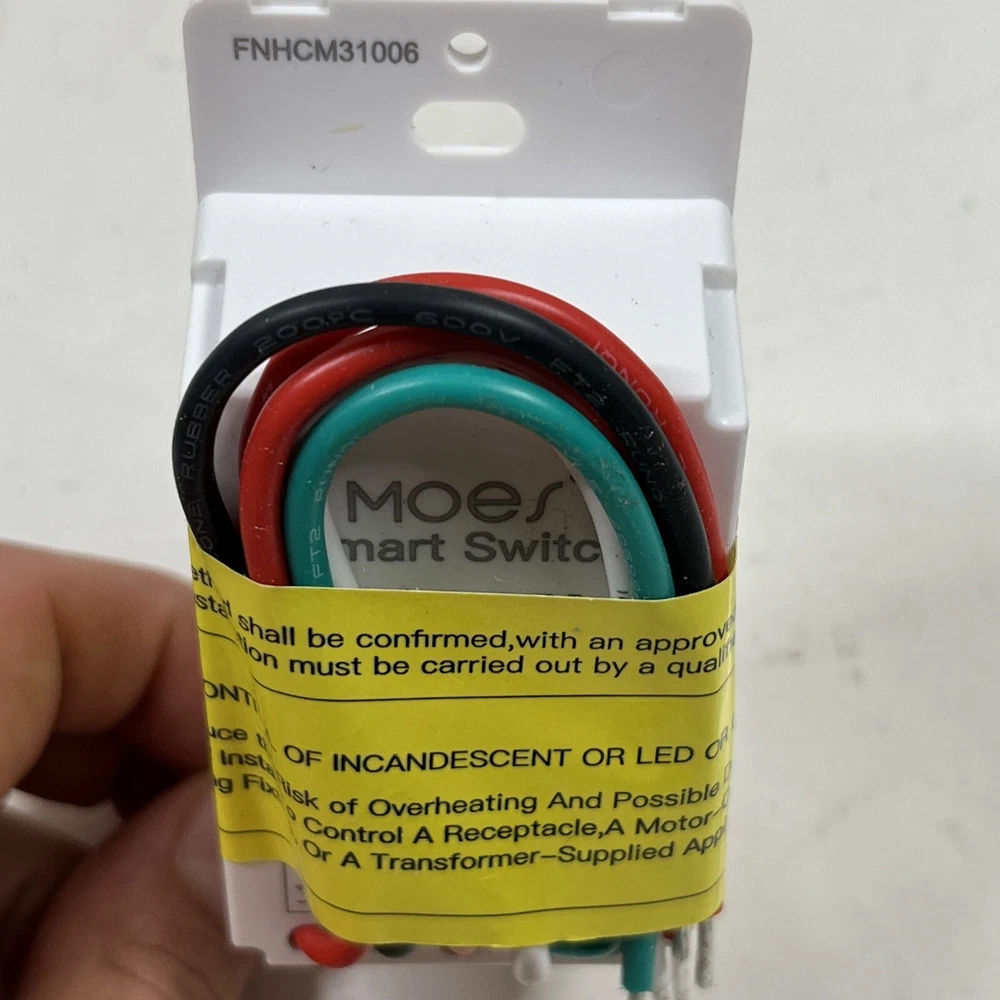 Application:Light ControlSuitable For:WallDimension:106*45*35 mmCurrent Rating:4-10 AMaximum Amperage:10 AStandby Power:≤0.5WFeatures:Timer, Remote Control, Voice ControlType:Switchgtin13:723585037499Material:ABS/PlasticBrand:MOESColor:WhiteSeller Notes:“Brand new without a box or installation nuts. You will receive the new switch as pictured.”MPN:WS-SR-US-TSmart Home Compatibility:Amazon Alexa, Google Assistant, APPCurrent Type:ACConnectors:3-WayOperation Method:On/OffVoltage:100~245V AC 50/60HzMounting Style:WallSmart Home Protocol:Wi-Fi, 2.4GHzSwitch Style:Push Button/RetractiveUPC:723585037499Manufacturer Warranty:2 Years