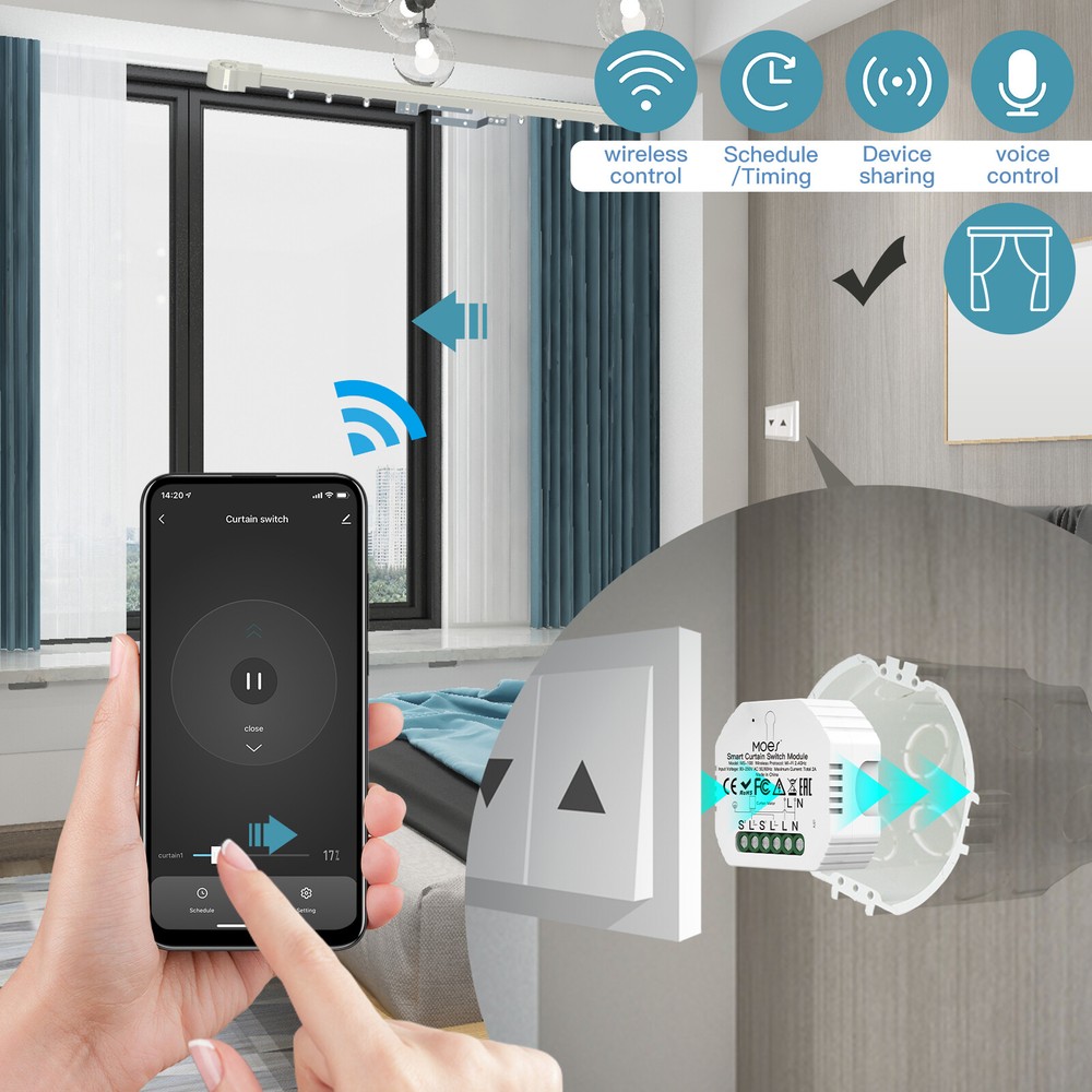 MOES WLAN Smart Rolladen Jalousien Schalter Modul Zeitschaltuhr Alexa Google APP Bequemlichkeit - Wandelt den Motor der herkömmlicher Rollläden in intelligente Geräte um, die über Sprache und App gesteuert werden können. Kann auch für herkömmliche 2 Gang Rolladenschalter verwendet werden, um den Rollladen, Vorhang, Jalousie intelligent zu steuern. (Hinweis: Wird nur über die App unterstützt, um die Stoppfunktion zu erreichen, es ist jedoch keine Stoppfunktion am Schalter verfügbar). Drahtlose Fernbedienung - Kompatibel mit der Smart Life / Tuya-App. Überall können Sie Ihre Geräte über ihr Smartphone fernsteuern. Kann nur unter 2,4 GHz WiFi verbunden werden und keinen Hub erforderlich. Sprachsteuerung - Kompatibel mit Amazon Alexa und Google Home. Wenn Sie bequem auf dem Bett liegen, müssen Sie nur sagen: „Alexa, öffne den Vorhang“, um dein Ziel zu erreichen. Timer Funktion und Familienfreigabe - Sie können Timer in der App so einstellen, dass Rolladen zu bestimmten Zeiten (Zeitplan, Countdown, Schleife) automatisch geöffnet werden. und es kann eine Verbindung zu mehreren Geräten herstellen, sodass Sie die Kontrolle mit Ihrer Familie oder Freunden teilen können. Hinweis - Bevor Sie eine Bestellung annehmen, stellen Sie bitte sicher, dass Ihr Motor 4 Drähte hat (Motor nicht im Lieferumfang enthalten) und kein Gleichstrom ist. Nur WiFi und nicht kompatibel mit RF. Praktische Bedienung Verwandelt herkömmliche Schalter in intelligente Geräte, sodass eine einfachere und bequemere Steuerung von Jalousien, Rollläden und Vorhängen möglich ist. Handsfree Sprachsteuerung Stellen Sie eine Verbindung zu Amazon Echo oder Google Home her und ermöglichen Sie eine sprachaktivierte Handsfree-Steuerung. Drahtlose Fernbedienung Nutzen Sie die Smart Life/Tuya-App, die für iOS und Android verfügbar ist, und öffnen und schließen Sie Rollläden von überall und jederzeit. Multifunktionale Verwendung Verwendung mit allen Arten von Fensterverdunkelungen überall im Haus oder auch mit Markisen auf der Terrasse. Zeitpläne und Countdowns Automatisieren Sie Ihr Zuhause, indem Sie Zeitpläne, Timer und Countdowns einrichten, damit Sie nie wieder vergessen, die Rollläden zu schließen. Familienspaß Unterstützt ein Mobiltelefon für mehrere Geräte und mehrere Geräte für ein Mobiltelefon, sodass die ganze Familie die automatische Steuerung nutzen kann. Paketliste: WLAN-Vorhangmodul * 1 (mit Montageclip) Bedienungsanleitung * 1 Hinweis: Motor nicht im Lieferumfang enthalten, muss separat erworben werden. Zahlung Versand Rückgaben Bewertungen Kontaktiere uns Zahlung Wir akzeptieren nur von eBay angeforderte Zahlungsmethoden. Sie können sofort nach Auktionsende oder nach Abschluss der Einkäufe zur Kasse gehen und bezahlen. Wenn Sie Probleme mit der Zahlung haben, kontaktieren Sie uns bitte per eBay-Nachricht. Versand 1.Bitte erlauben Sie bis zu 48 Stunden für die Versandvereinbarung nach bestätigter Zahlung. Wir versenden Artikel nur an die eBay-Adresse. Wir haften nicht für Verluste aufgrund falscher oder unzustellbarer Lieferadressen. 2 .Der Versand dauert in der Regel 2-5 Werktage (EU-Warenlager) oder 8-15 Werktage (Lager außerhalb der EU), Samstag und Sonntag ausgeschlossen. Wenn Sie den Artikel dringend benötigen, kontaktieren Sie uns bitte vor dem Kauf für Einzelheiten. 3.Wir bieten keinen Abholservice im Geschäft an, ich hoffe, Sie können das verstehen. Rückgaben 1.Wenn Sie mit unseren Produkten nicht zufrieden sind. Bitte kontaktieren Sie uns, bevor Sie die Rücksendeanfrage öffnen. Wir bieten eine 30-tägige Geld-zurück- oder Umtauschgarantie. 2.Bitte kontaktieren Sie uns für die RMA-Nr. und Adresse, bevor Sie den Artikel zurücksenden. Bewertungen 1. Bitte kontaktieren Sie uns, bevor Sie ein neutrales oder negatives Bewertungen hinterlassen. Wir würden unser Bestes versuchen, um Ihnen bei der Lösung des Problems zu helfen. Bitte erlauben Sie uns, Ihre E-Mail innerhalb von 24 Stunden zu beantworten. 2 . Wir werden den Service so gut wie möglich erbringen🥰, denn das Bewertungen und ist das, wonach wir streben. Bitte senden Sie mir eine E-Mail über "Meine Nachrichten" oder "Verkäufer kontaktieren", wenn Sie Fragen zu unseren Angeboten oder Ihrem Kauf haben. Kontaktiere uns 1. Bitte kontaktieren Sie uns, wenn Sie mit dem Artikel nicht zufrieden sind, nachdem Sie ihn erhalten haben. Kontaktieren Sie uns einfach über den Link "Dem Verkäufer eine Frage stellen " auf eBay. 2. Alle Antworten werden an Ihre E-Mail-Adresse gesendet. Wenn Sie innerhalb von 1-2 Werktagen keine Antwort erhalten, überprüfen Sie bitte Ihre "Meine Nachrichten" , falls Ihr E-Mail-Anbieter einen übermäßig aggressiven Spam-Filter hat, der E-Mails von eBay blockiert. Bitte senden Sie uns WIEDER eine E-Mail. Danke!