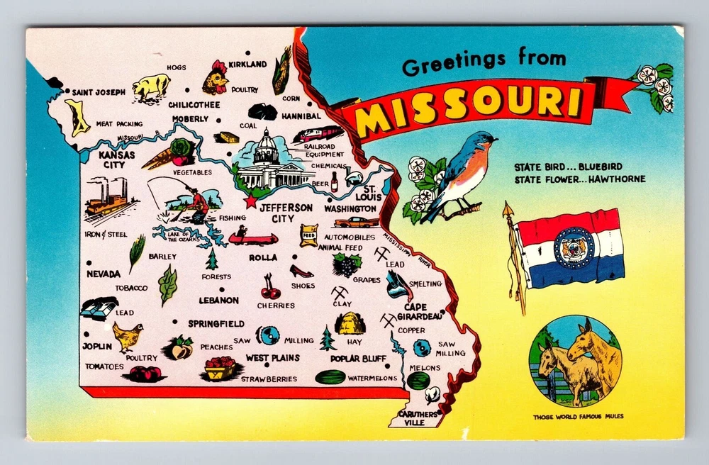 MO-Missouri, General Greetings Landmarks Map, Vintage Postcard