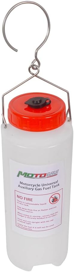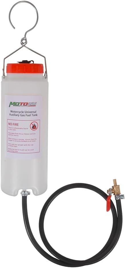 MOTO4U Auxiliary Gas Fuel Tank Universal Motorcycle Gas Tank Repair Tool Kit Auxiliary Fuel Tank 1L with Fuel Hose,Cut Off Valve and Lid with Air Outlet Product Details Capacity: 1 Liters Fuel Type: Gasoline Product Grade: fair Manufacturer: MOTO4U Item Weight: 9.2 ounces Package Dimensions: 12.17 x 7.64 x 3.74 inches Manufacturer Part Number: DGYHDQK1L Brand: MOTO4U Material: Plastic Fit Type: Universal Vehicle Service Type: Motorcycle Item Weight: 0.26 Kilograms 【Easy to Connect】Secure gas tank with hose fits 0.34" interface. This structured design allows for easier connection to your motorcycle. The motorcycle fuel tank can also be used for refilling transmission oil on some late-model motocross bikes. 【Widely used】fuel tank for use with fuel-injected models with external fuel pumps as well as standard carburetor-equipped motorcycles. Can be used on Mowers, bikes, and cars. 【Control Flow Rate】Fuel tank has an upgrade cut-off valve for easier opening and closing to control the flow. This Auxiliary Fuel Tank has an air outlet in the lid for smoother fuel flow. Aux fuel tank can hold up to 1L or 1/4 gallon of fluid. 【Synchronizing Carburetors】Auxiliary fuel tank for DIY servicing, tuning, carburetor balancing, etc for use on motorcycles, and cars, ideal for motorcycle servicing as the fuel tank must be removed to access the top of the engine & carburetor. 【Handy to Use】Hang the plastic fuel tank over the engine. Hook the hose to the carburetor and you can finish your work. The graduated scale on side of the bottle provides an accurate measurement of fluid volume.