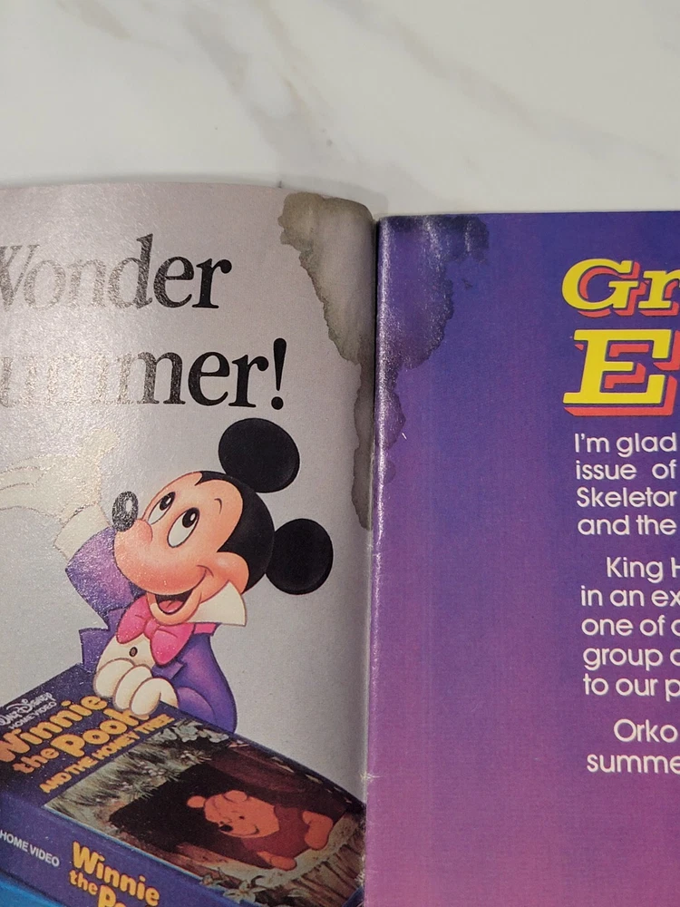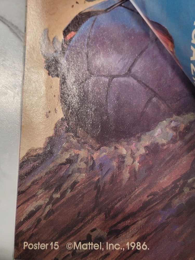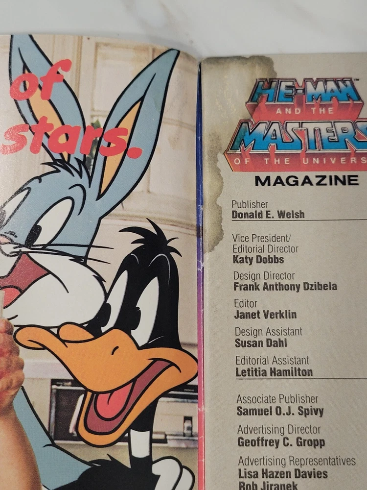 MOTU He-Man And The Masters Of The Universe Magazine SUMMER 1986 W/ Posters. (Poster #14 And Poster #15). There is some staining pictured that goes throughout most of the magazine.