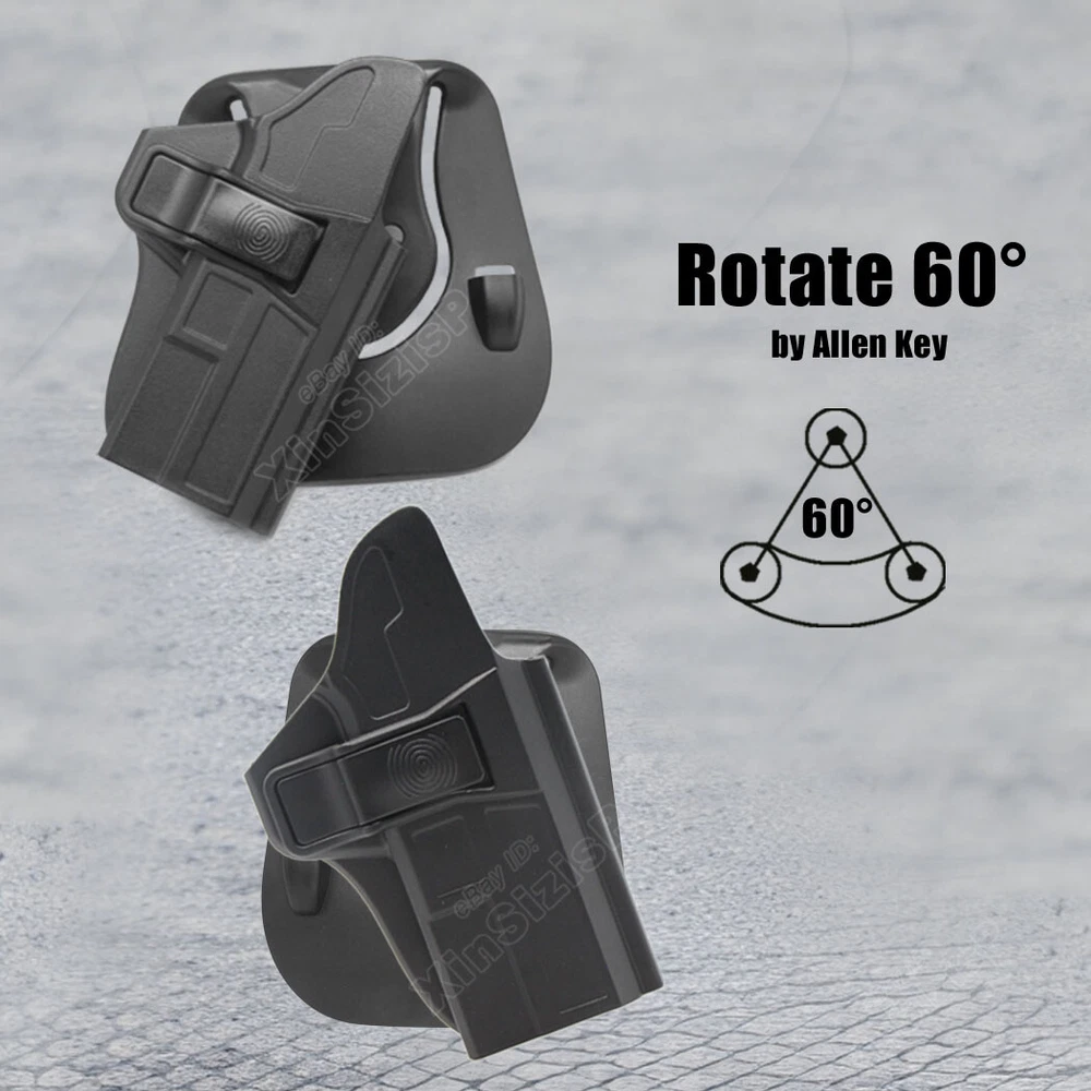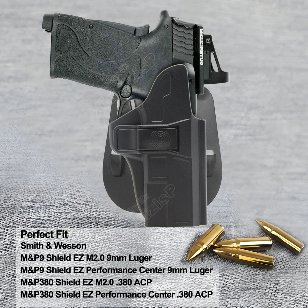 High Quality Military & Police Grade Polymer OWB Holster Specially Designed For Fast Draw During Duty Or Shooting Competition. Tactical Holster fit Smith & Wesson Holster fit Smith & Wesson M&P9 Shield EZ M2.0 9mm Luger Smith & Wesson M&P9 Shield EZ Performance Center 9mm Luger Smith & Wesson M&P380 Shield EZ M2.0 .380 ACP Smith & Wesson M&P380 Shield EZ Performance Center .380 ACP Not fit: M&P9 Shield EZ M2.0 with Crimson Trace Red Laserguard 3.68" M&P9 Shield 3.1" M&P9 Shield Plus 3.1" M&P9 M2.0 Shield 3.1" Barrel M&P9 Shield Plus 4" Barrel M&P40 Shield 3.1" M&P40 Shield Plus 3.1" M&P40 M2.0 Shield 3.1" Barrel M&P40 Shield Plus 4" Barrel M&P45 Shield 3.3" M&P45 Shield Plus 3.3" M&P45 M2.0 Shield 3.3" Barrel (It perfect fit the gun with Optic Mount Mini Sight above on the end of the barrel, But without laser and no embedded chassis, and no flashlight style ) Materials & Durable Made of durable high-tech polymer materials - Stronger than leather will wear out, the polymer holster will not wear out and get flimsy. High S afety Q uick release button (Level II retention) , An audible click lock system ensures knowing when your weapon is securely holstered A djustable E asily set your paddle cant 0-60 degrees according to your preference with the Allen key Ease And Comfort Easy on / Easy off- No need to undo your belt every time you wear your holster.Sweat-proof- Protect your weapon from salty perspiration and not absorb sweat.Adapt to every environment In the Package: · 1*Holster with Paddle Attachment · 1*Allen Key Shipping: Ships same day or next except Sundays and Holidays ! Free shipping! Ship by USPS First Class Package. 100% MONEY BACK GUARANTEE. Any question please be free to contact with us .Thanks!