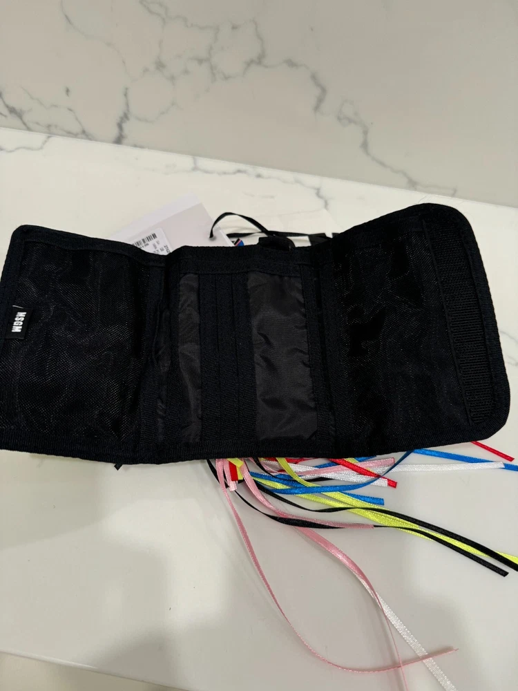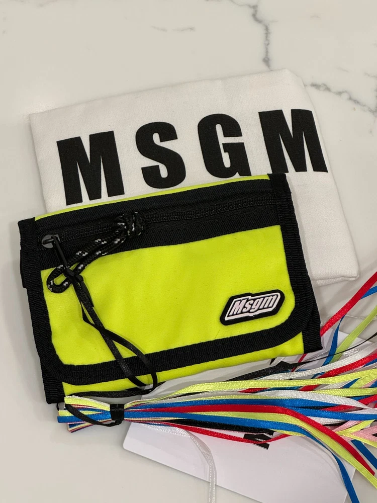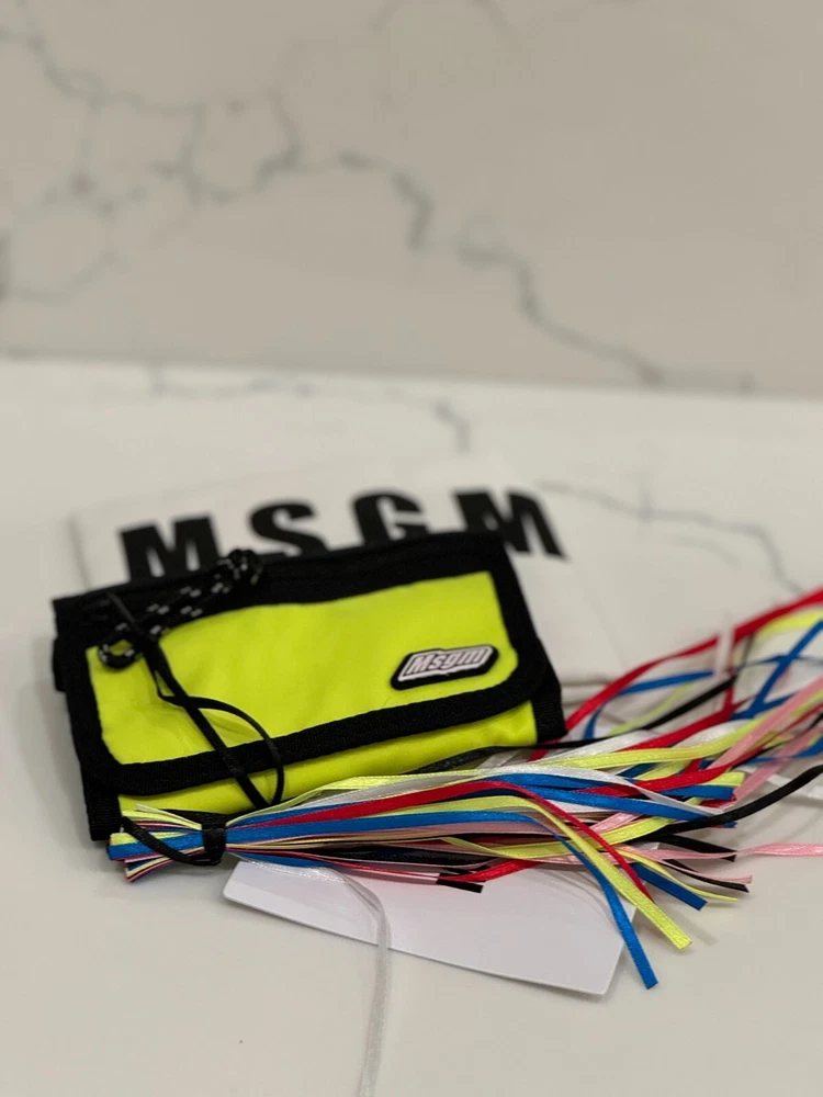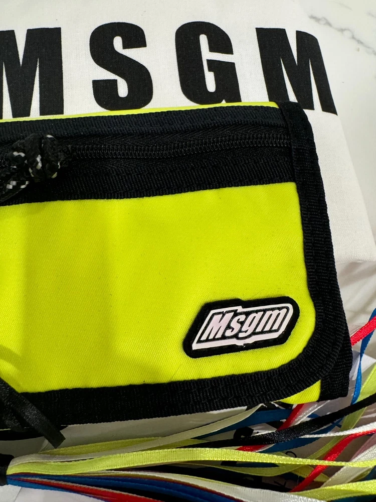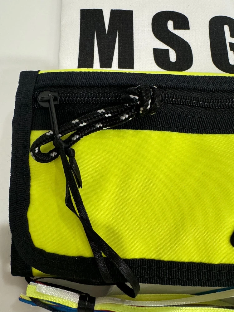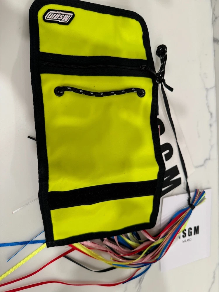 Fabric: Technical weave Neon color is brighter than it appears in still photos Branded patch at front Key ring at interior Velcro closure Zip exterior pocket, interior patch and pouch pockets Packable cord shoulder strap Lined Imported, China Height: 4in / 10cm Length: 5.5in / 14cm Strap drop: 19in / 48.5cm