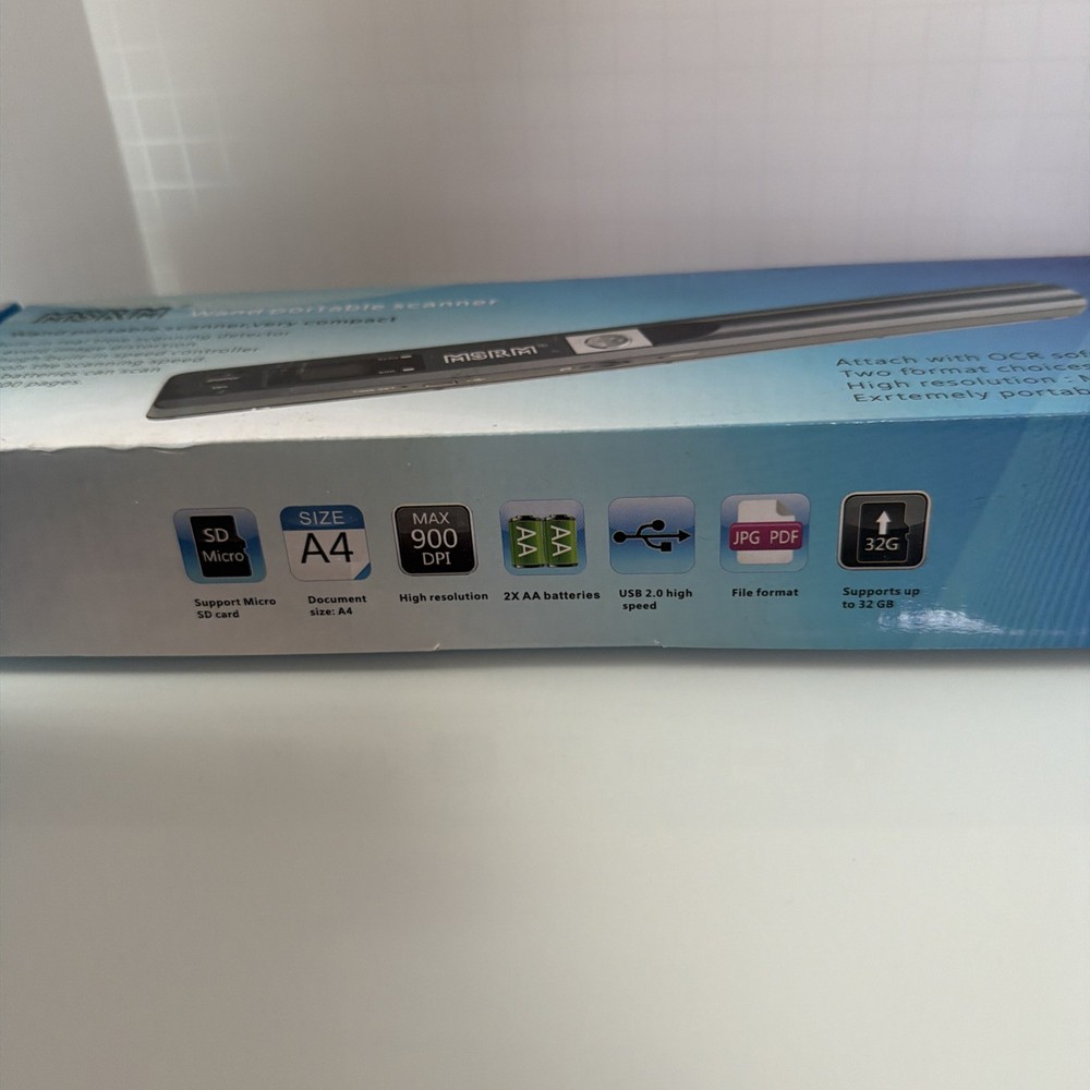 The MSRM Handheld Portable Scanner is a compact and convenient device designed for scanning A4-sized documents with high resolution up to 900 DPI. With USB 2.0 connectivity, this scanner offers quick and easy connection to your computer for efficient document scanning. Its portable design allows you to easily carry and use it on the go, making it ideal for digitizing documents while traveling or working remotely. The MSRM Handheld Scanner is a reliable tool for capturing important documents in a sleek and portable package.