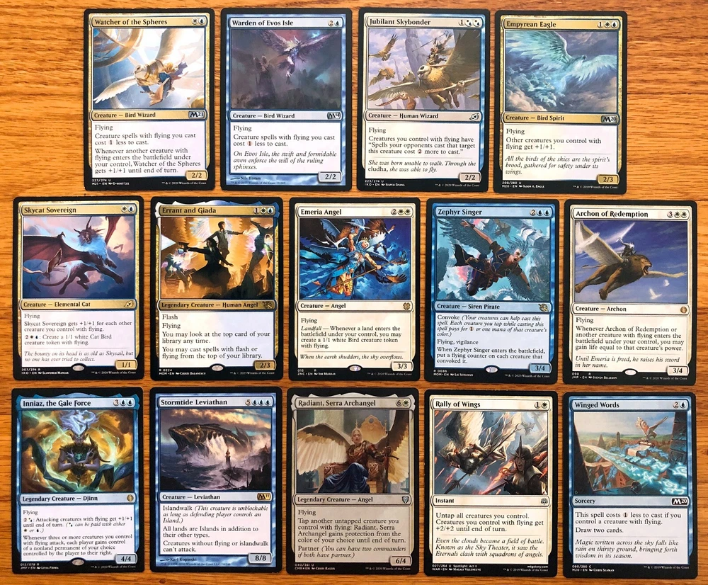Magic the Gathering on eBay This listing is for a custom-built Commander/EDH deck featuring Abuelo Ancestral Echo . This is a fully-playable 100-card Commander deck . This is a blue-white flyers deck, with most of the creatures having flying as well as cards that specifically power up your flying team. While taking your offense to the skies, you'll also take advantage of Abuelo's flicker ability, with many of your flyers also having enters-the-battlefield abilities. The two strategies combine to create an endless train of value plays, ensuring you never run out of gas in the long game, while flying over your opponents' defenders for the win. Deck strategy highlights: - An aerial force of powerful flying creatures and cards which provide bonuses to flyers - A torrent of creatures & artifacts with enters-the-battlefield abilities that provide perfect targets for Abuelo to flicker in and out of play - A suite of spells & creatures that create additional flicker triggers, adding fuel to Abuelo's value engine - Numerous card draw and threat removal effects, repeatedly exploitable with Abuelo - 34 lands and 14 mana boosting spells to ensure multiple spells and Abuelo flickers over the long game Timing is the name of the game here, with Abuelo able to provide key exile-and-returns to evade opponents' removal and repeatedly copy your own enters-the-battlefield abilities. Bury your opponents in an avalanche of triggers while flying overhead with Abuelo's winged army. Deck contents: Commander : Abuelo Ancestral Echo Land : 15 Plains, 12 Islands, Command Tower, Skybridge Towers, Azorius Guildgate, The Fair Basilica, Windbrisk Heights, Castle Vantress, The Surgical Bay Ramp : Sol Ring, Arcane Signet, Mind Stone, Commander's Sphere, Midnight Clock, Kefnet's Monument, Oketra's Monument, Hedron Archive, Omen Hawker, Ecologist's Terrarium, Clay-Fired Bricks, Boreas Charger, Solemn Simulacrum, Coveted Jewel Flying Tribal : Watcher of the Spheres, Warden of Evos Isle, Jubilant Skybonder, Empyrean Eagle, Skycat Sovereign, Errant and Giada, Emeria Angel, Zephyr Singer, Archon of Redemption, Inniaz the Gale Force, Stormtide Leviathan, Radiant Serra Archangel, Rally of Wings, Winged Words Flicker Enablers : Soulherder, Flickerwisp, Yorion Sky Nomad, Galepowder Mage, Another Round, Cloudshift, Displace, Virtue of Knowledge, Scroll of Fate, Soul Summons Card Advantage : Wall of Omens, The Everflowing Well, Elite Guardmage, Cloudblazer, Ezrim Agency Chief, Behold the Unspeakable, Against All Odds, Reveillark, Karmic Guide, Shepherd of the Clouds Removal/Defense : Man-o'-War, Deadeye Harpooner, Palace Jailer, Meteor Golem, Generous Gift, Settle Beyond Reality, Stonehorn Dignitary, Subjugator Angel, Ivory Giant Misc Offense : Linvala Shield of Sea Gate, Peregrine Drake, Urbis Protector, Diluvian Primordial, Stunt Double, Thistledown Liege, Loyal Unicorn, Hold the Gates 5 token cards are also included. All cards range from moderately played to near mint; most are LP-NM. Please see the photos for detail. Shipping: United States only; items are shipped within 2 business days, usually next day. Please check out my other singles and Commander decks, and feel free to ask any questions. Thanks for looking!