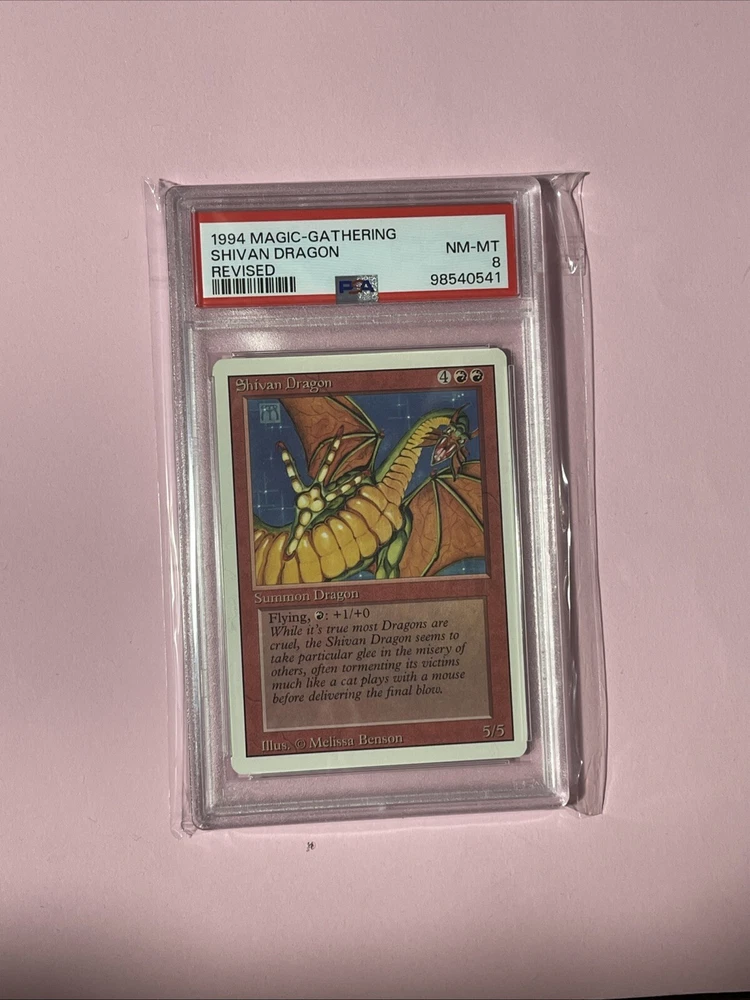 This rare and powerful creature card from the Revised Edition set of Magic: The Gathering features the majestic Shivan Dragon. With a fiery red color and a defense of 5, this card is a formidable addition to any collection. The card is illustrated by Melissa A. Benson and has a regular finish. The Shivan Dragon card is a must-have for any serious Magic: The Gathering player or collector. Its rarity and unique abilities make it a valuable addition to any deck. Manufactured by Wizards of the Coast and featuring the iconic artwork of Benson, this card is a true gem. Don't miss your chance to own this piece of MTG history.