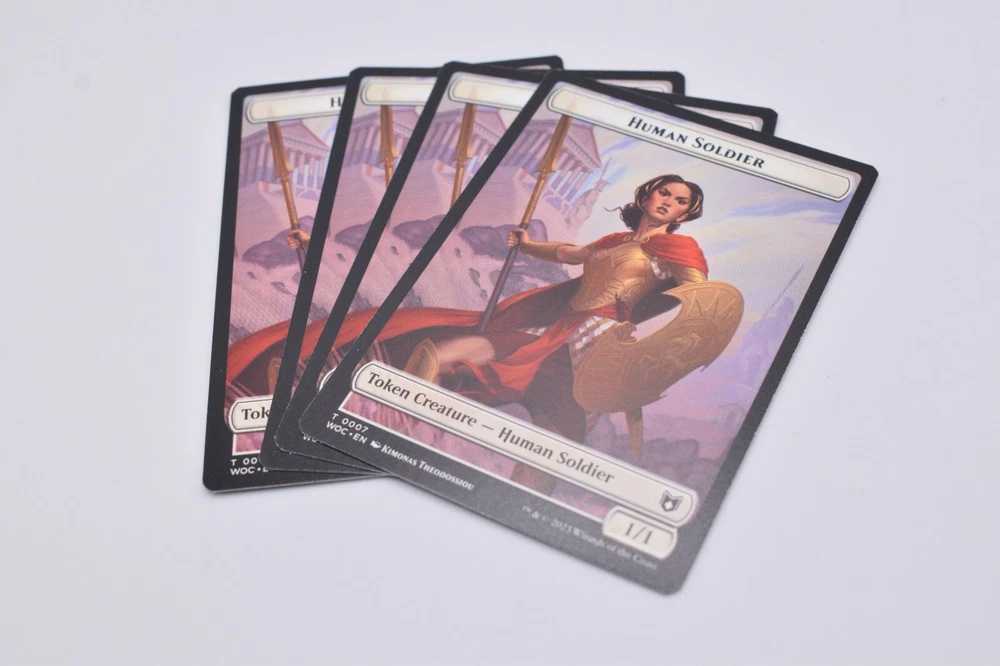 Card Type: Token Creature Card Number: 12/7 Game: Magic: The Gathering Card Size: Standard Card Name: Pirate Human Soldier Double-Sided Token Material: Card Stock Vintage: No Autographed: No Language: English Finish: Regular Manufacturer: Wizards of the Coast Rarity: Token Age Level: 13+ Set: Commander: Wilds of Eldraine