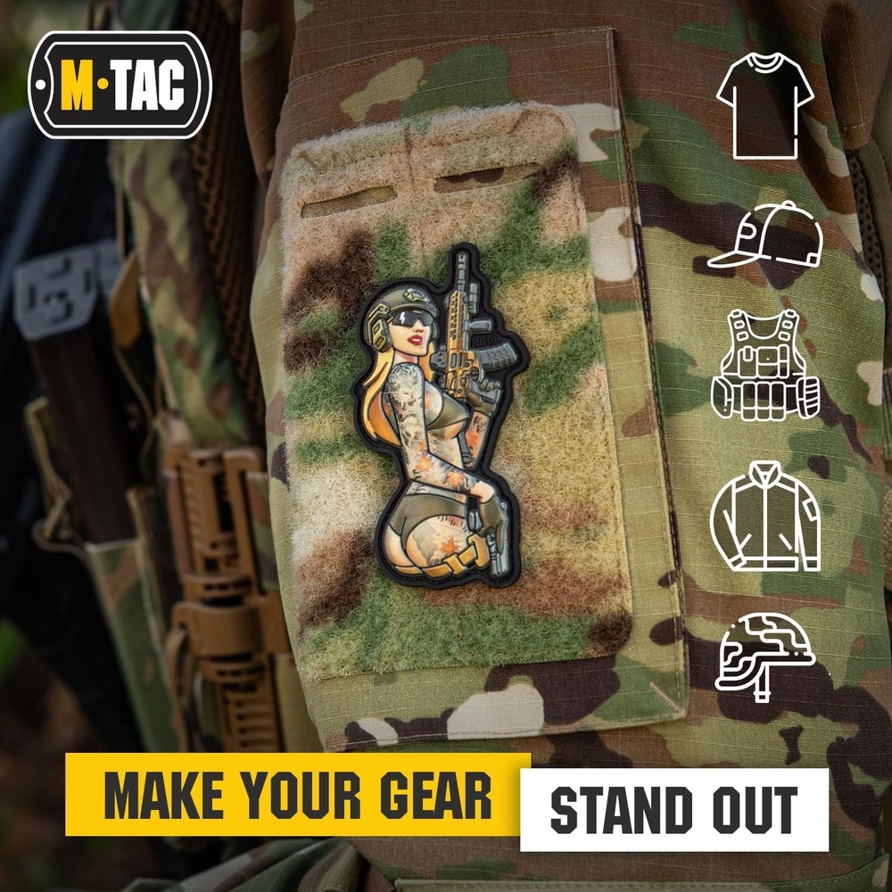 Free eBay listing template designed by dewiso.com M-Tac Morale Patch Tactical Girl - PVC Military Patch with Hook Fastener Backing - Patches for Vest, Backpacks, Hats (Tattoo 4) (Tactical Girl Japan) FREE AND FAST SHIPPING! About this item Historically Inspired Design - Drawing inspiration from the iconic American Pin-Up culture, this M-Tac morale patch embodies the flirtatious yet fiercely independent spirit of the era. The Pin-Up girl design is a salute to the nose art on warplanes, symbolizing luck and a morale boost. Durable Material - Constructed from high-quality PVC material, this military patch offers a 3D design and is both wear- and water-resistant, making it suitable for outdoor use. The patch maintains its shape and color even with regular usage. Quick and Easy Connection - The pvc army patch is ideal for military and tactical gear or bags with a loop panel. Attach it rapidly and securely by aligning the patch's loops with the panel's hooks, ensuring it won't get lost. Attach Anywhere - Measuring 3.5" x 3" (9 x 7.5 cm), the tactical patch can be attached to a variety of items, including bags, vests, pouches, uniforms, hats, jackets, backpacks, caps, and other gear using a hook-and-loop system to provide a distinctive appearance. Multipurpose - The M-Tac army patch is perfect for everyday carry and is an excellent way to demonstrate your commitment to military and tactical operations, police work, SWAT deployments, Air Force personnel, security, marine, and fire and rescue professionals. Product We offer a 30-Day Return Policy on items which you are not completely satisfied with. You have the option for a full-refund or an exchange of the item. No returns are available on items shipped outside of the US . Shipping We offer Free Shipping to the US and ship within 2 business days of payment, usually sooner. We use UPS express shipping. That's why your products are usually delivered within 3 days . Contact We try our very best to make sure every customer is completely satisfied. If there's a problem , message us! We're happy to help. 24/7 live chat available.