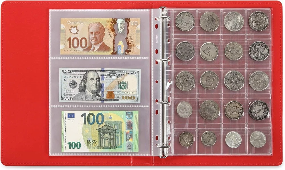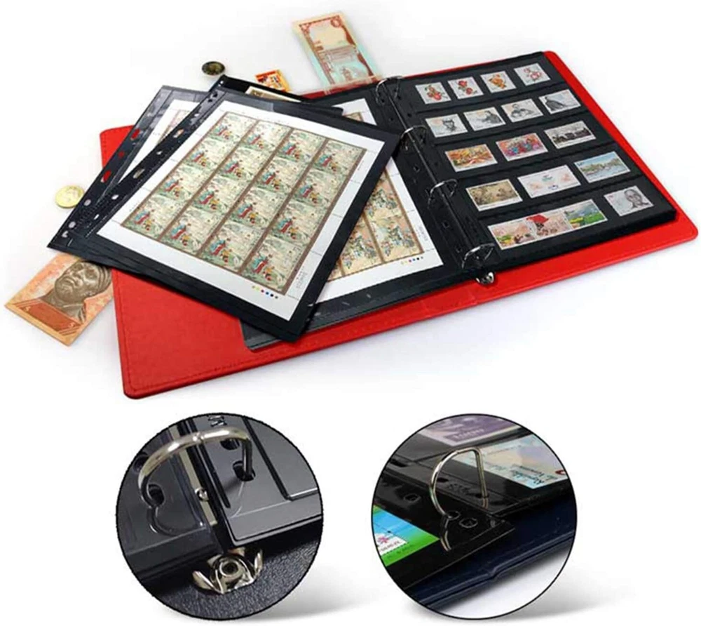 MUDOR Empty Premium PU Classic Binder, 4 Ring Binder Albums Stockbook for Stamps, Documents, Coins, Bank Notes (Red) Color Red Material Polyurethane (PU) Capacity 2 Inches Brand MUDOR Sheet Size Letter About this item · Premium 4-ring binder, D-shaped design buckle.Note: This product is only an empty book and does not contain inner pages. · Binder Size:12 3/5"x9 4/5" x 2 " (320 x 250 x 5 mm) · Dramatic attention to detail,Hand stitching. · Note: This product is only an empty book and does not contain inner pages.Suitable for stamps, coins and postcard inner pages, it can holds up to 35 stock sheets (8 1/2" x 11") . · Compatible any 8 1/2" x 11" size 4-ring or 9 hole sheet, The best choice is MUDOR pages.