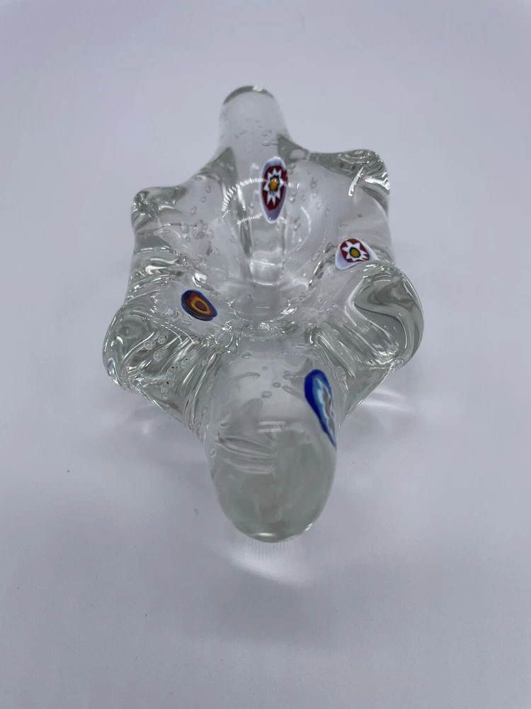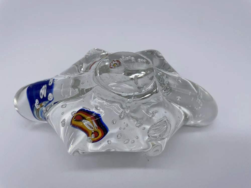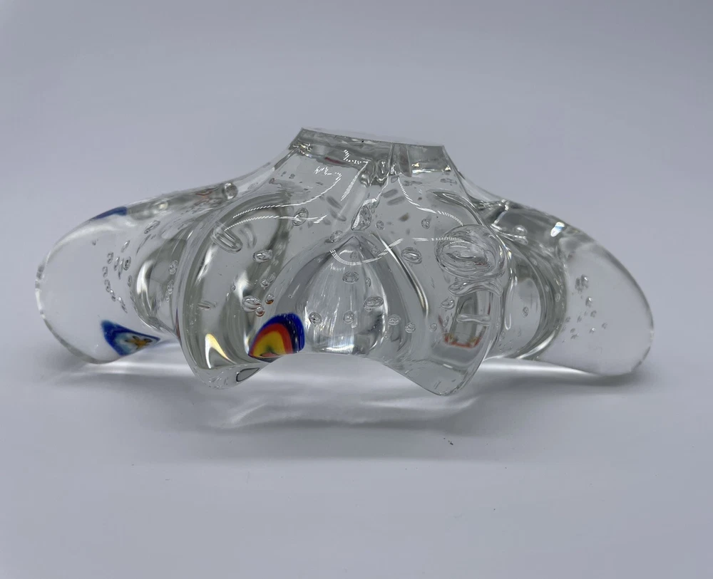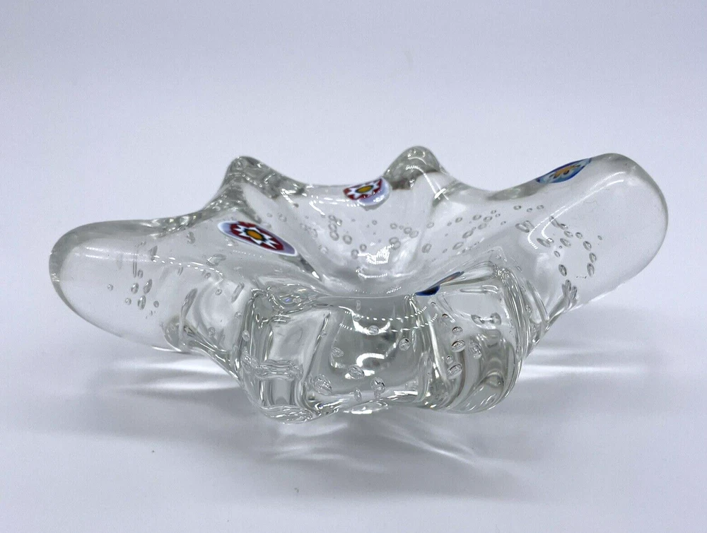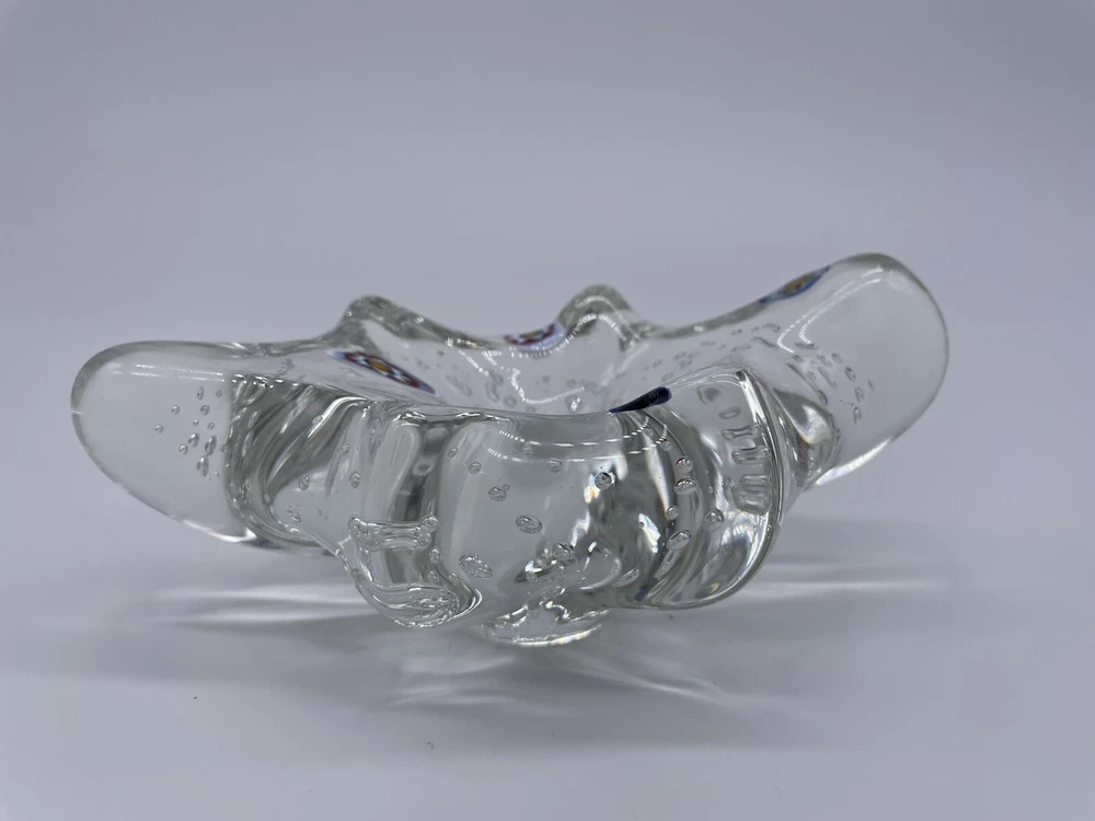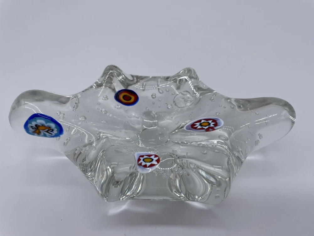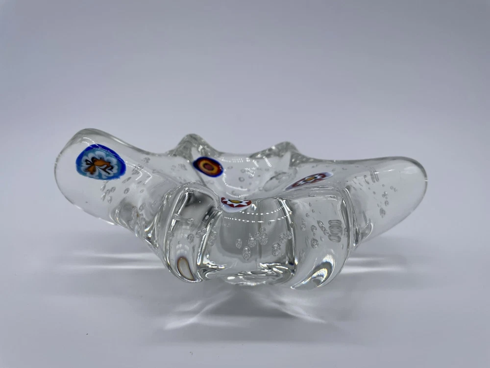 MURANO ART GLASS Millefiori Abstract Paperweight/Trinket Tray/Decoration Clear Glass with Bubbles. Measures approx. 6" x 3" x 2". Please zoom all pictures as they are part of the description. I try my best to describe every listing but I am NOT an expert and items are sold "as is." My idea of great/good may be different than yours, so EXAMINE PHOTOS CAREFULLY since they are binding and a supplement to the word description in case I should miss something. If I fail to mention something, it does not qualify as “item not as described” if it shows in my pictures. EACH PHOTO IS WORTH A THOUSAND WORDS AND THEY ARE OF THE EXACT ITEM YOU WILL RECEIVE. Postage is fully tracked. 1194-11