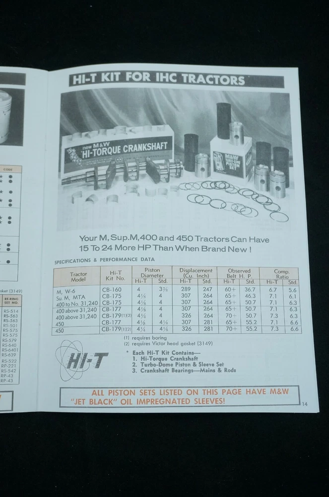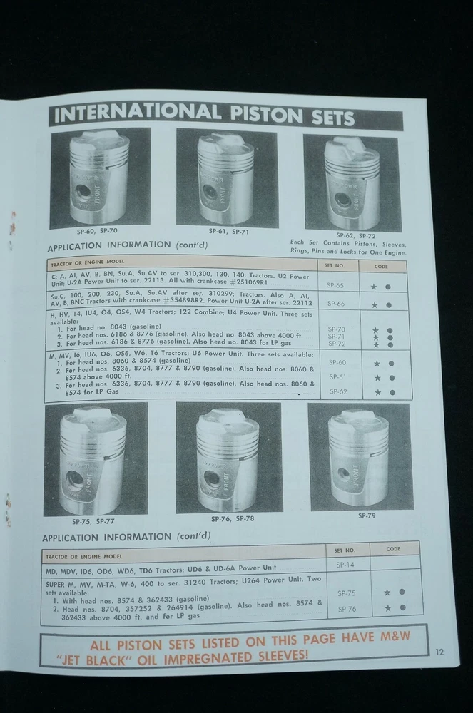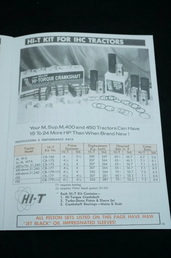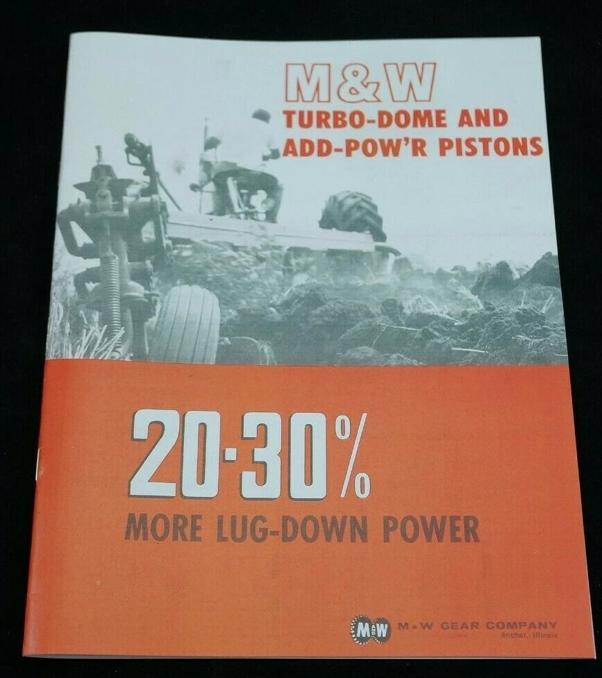 Reprint of M&W Gear Company Turbo-Dome and Add-Pow'r Tractor Pistons Dealer Type Brochure / Catalog Covers Specs and Part Numbers Index: * Allis Chalmers * Case * Cockshutt * Ferguson * Ford * Industrial * International * International - HI-T Kit * John Deere * Massey-Ferguson * Massey-Harris * Minneapolis-Moline * Oliver * Re-Ring Specification 21+ Pages Including Covers Real Paper Manual, Center Staple Binding Printed In USA Ships USPS First Class Package with Tracking