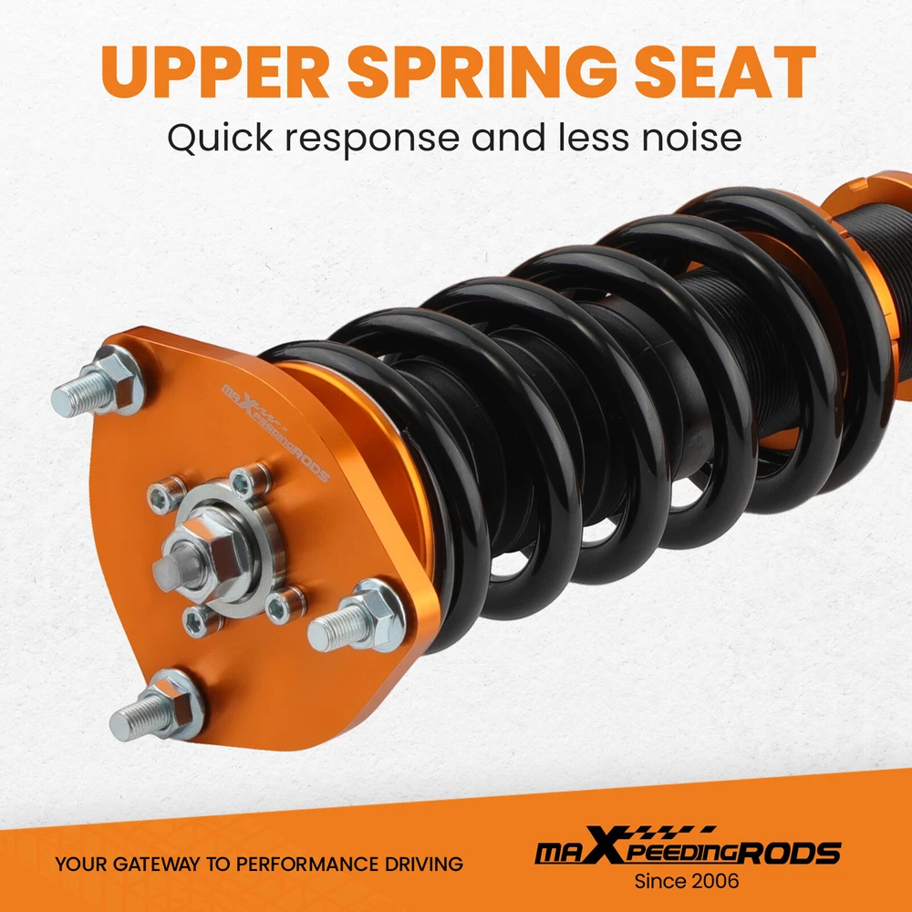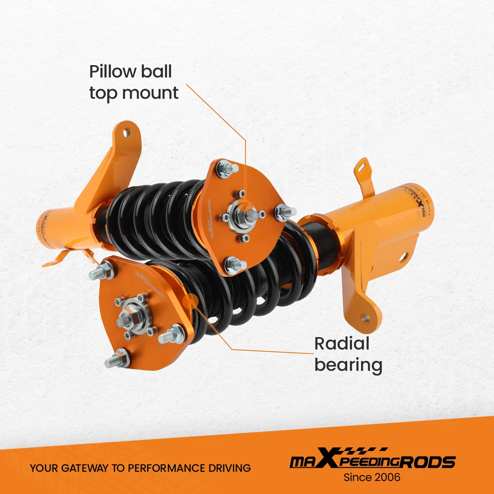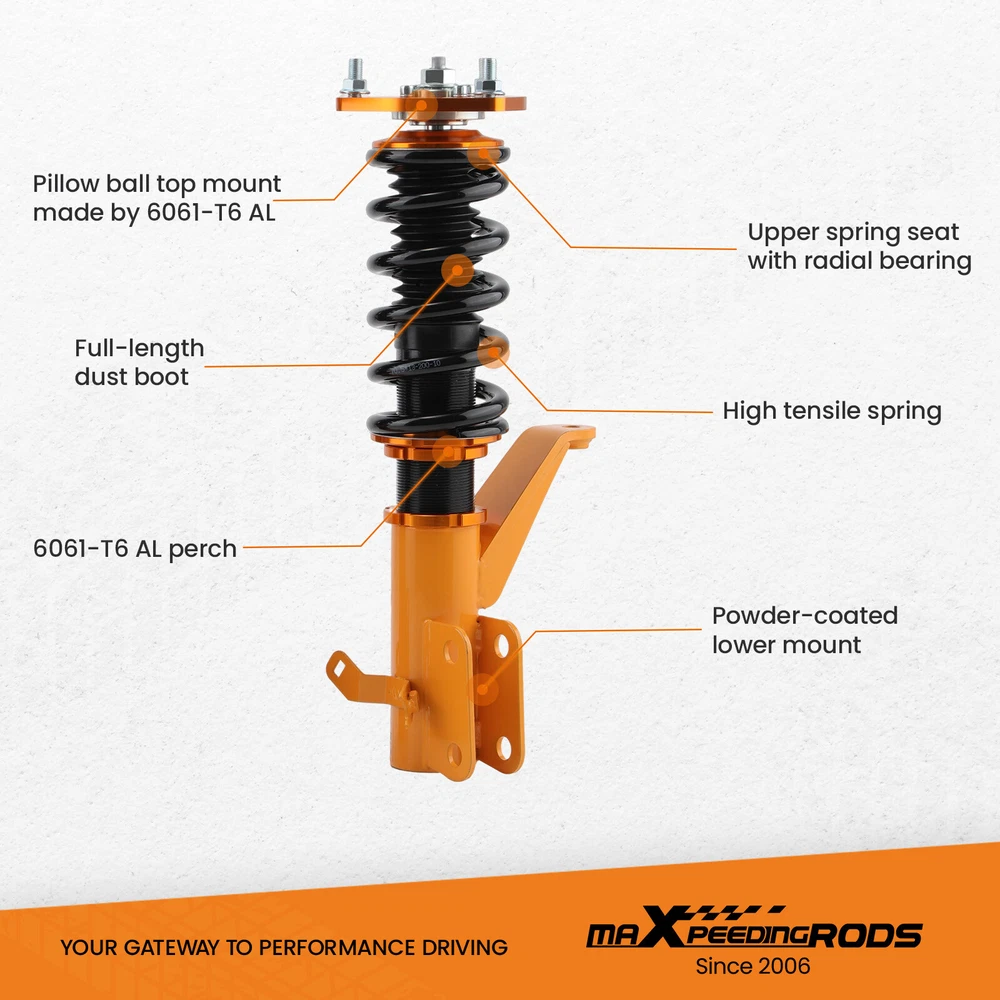 zjpss LOGO Home Contact us Promotion WHY CHOSE US Manufacturer We know our products Easy Return Quick, Simple Guaranteed Fitment Always the correct part PRODUCT DISPLAY MaXpeedingrods Coilovers Struts Suspension Kit for Honda Civic 2001-2005 Fast Shipping International Shipping 30 Days Return Policy Secure Shopping DESCRIPTION Maxpeedingrods' street coilovers are designed and developed for all motoring enthusiasts that want excellent handling without sacrificing comfort. This suspension system is ideal for daily driving and occasional, light track use. High quality components are adopted to ensure product durability and stability. Each application is fully test fitted and completely road tested to guarantee all our customers perfect performance and comfort expectations. Features - Ride Height Adjustable - Drops From 1 to 3 Inch From Factory Ride Height - 55CrSi high strength durable cold wound steel & heat treated coils - Manufactured from high quality T-6061 billet aluminum with an anodized finish for superior strength and corrosion protection. - Improved Handling and stability without premature tire wear - Improved Vehicle Stability and traction in hard cornering situations - Full threaded absorber tube casing for independent height adjustment - Twin-Tube System for Comfortable Ride on Streets Applications For Honda civic VII DX/EX/GX/HX/LX/Si Coupe (EM2) 2001-2005 For Honda civic VII DX/EX/GX/HX/LX/Si Sedan (ES, ET) 2001-2005 NOTE: Not fit for Hybrid Specifications - Top mounts: Front pillow ball top mounts - Damping: Not available - Adjustable hight: Yes - Adjustable camber plate: No - Spring rate Front: 10 kg/mm (560 lbs/in) - Spring rate Rear: 6 kg/mm (336 lbs/in) - Coilover overall length Front: 490-620mm - Coilover overall length Rear: 395-410mm - Adjustable height: Yes lowering 1" to 3" - Shock type: Twin tube - Spring Preload: 7-10 mm - Color: Golden Package included 1 x Set of Coilover Spring Kit (2 Front + 2 Rear) 1 x Pair of wrenches for height adjustment ★ 30-day Money Back & 12-Month Replacement Guarantee. Please feel free to contact us if there is any question. Height Adjustable Lowering Kit; Independent Ride Height And Spring Tension Settings; High Rigidity 55CrSi Steel Cold-bent Springs; Anodized Shock Body With Anti-Corrosion Coating; Top Pillow Ball Mount Provides More Precise Feel From Suspension And Steering; Full 1 Year Limited Warranty From Date Of Purchase. SHIPPING US Domestic Shipping Notice - All items will be dispatched within 24hrs(Mon-Fri) Our carrier collects all the parcels at 4:30am PDT, any payment paid after 5:00am PDT will be shipped the next day at 4:30am PDT. If you paid Item Shipped On Est.Delivery Time Before Apr. 1st at 4:30am Apr. 1st at 5:00am Apr. 5th - Apr. 7th After Apr. 1st at 4:30am Apr. 2nd at 5:00am Apr. 6th - Apr. 8th If our estimated delivery time and eBay’s are contradictory,please refer to the standard delivery time of ours. Estimated Delivery Time From To Service Est.Delivery Time US US UPS or Fedex Ground 3-5 Business days Outside of US DHL FedEx 4-7 Business days Tracking number will be updated in 24 hours after shipment Please provide the following shipping information for your order Full physical address Telephone number Otherwise your shipment will be deferred. We are not responsible for any shipping lost caused by wrong shipping information Shipping rate If our ebay item listing doesn't show the shipping cost to your place. Please contact us to calculate the shipping fee for you. International Shipment For international shipment, we do not cover any import taxes or duties. Import tax is charged by the government, not us. Our item price and shipping cost do not include any import tax which will be charged by the shipping company when you got the parcel. Please be noted that is not the extra shipping fee. ` NO hidden charge!!! WARRANTY Free 2 Year Warranty: All AutoModPlanet products have 2 year warranty (unless otherwise stated). In the very unlikely event that you have a problem with our product, please contact us via eBay messages. Easy Return: If you are unhappy with your purchase for any reason, you can return it to us in an un-used condition in the original packaging within 30 days of purchase and we'll give you a refund or exchange. The refund/Exchange will not include postage/eBay costs. Please note you MUST contact us to obtain a Return Authorization Number before returning any part. Any parcel without the Return Authorization Number will be rejected. If your item is faulty or was incorrect, you must contact our sales representative before returning the parcel and we will endeavour to solve the problem effectively. Video or picture is required to show the item condition before we issue the Return Authorization Number. Important notice: 1. Any returned item(s) without Return authorization number will be rejected. 2. Please return your item(s) in original packaging and ensure that all packages are securely wrapped 3. We will not accept responsibility for loss or damage of goods during transit, please ensure that the insurance cover option is taken where possible 4. Upon receipt, all products will be inspected at our discretion in 3-5 business days. Then, the updated result will be informed. If you have made a mistake on purchase and wish to cancel the order before it is dispatched please contact us by ebay massages or email as quickly as possible. Note: All parcel will be collected by carrier at 8:00am on Monday to Friday. FAQ Will this fit my car? We have used the eBay compatibility list as a guide for buyers to use, but the eBay data system is not accurate and incomplete sometimes. Please make sure you have read through the whole listing and paid attention to “note” and “notice”. If there is any uncertain, please use the eBay message to check with our sales first. How much does delivery cost and how long will it take? You can check the delivery cost in the listing “Shipping and payments” section by selec