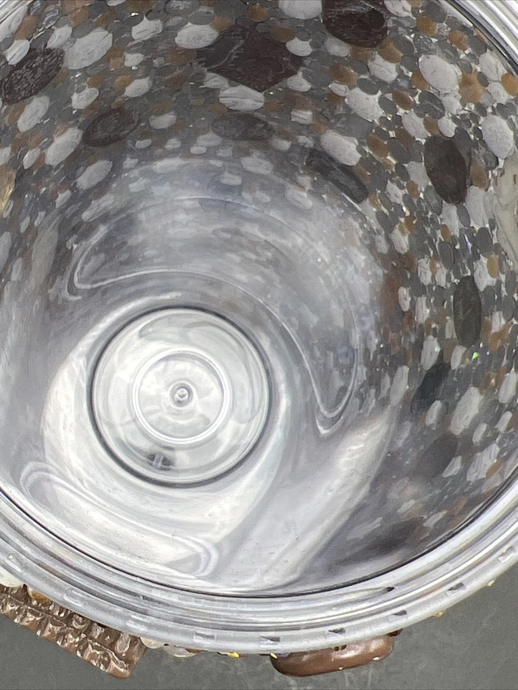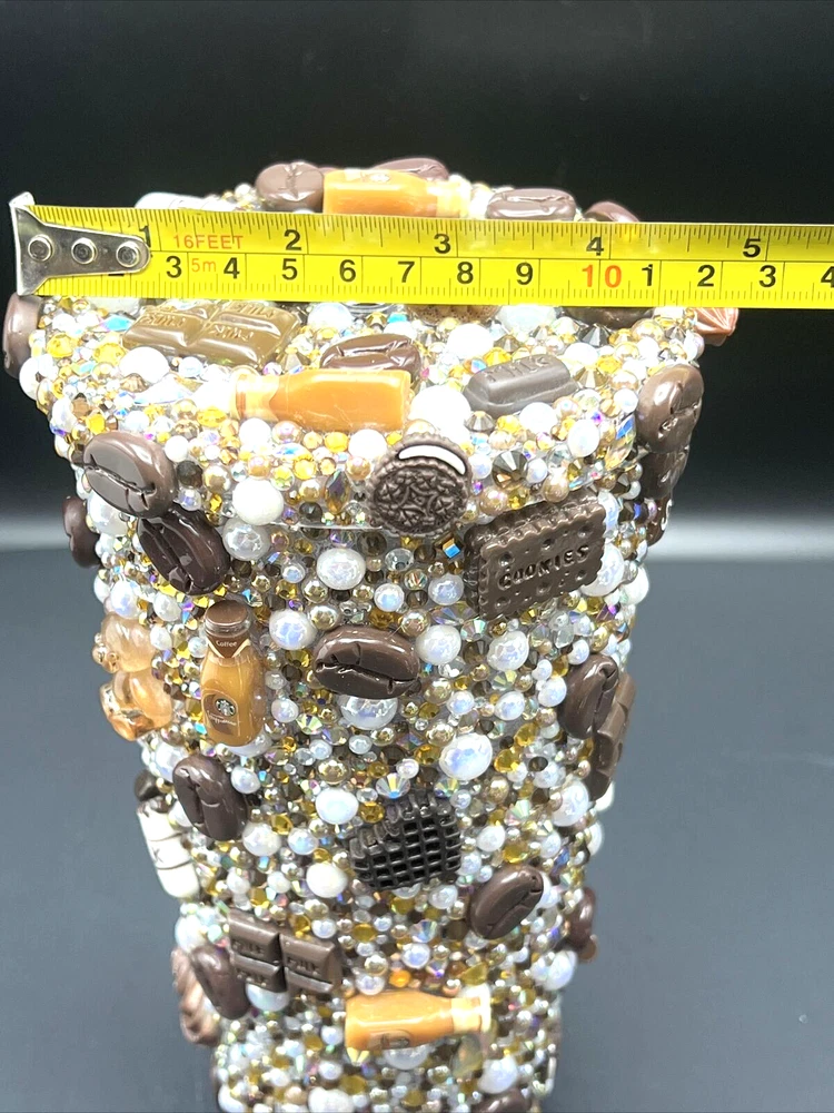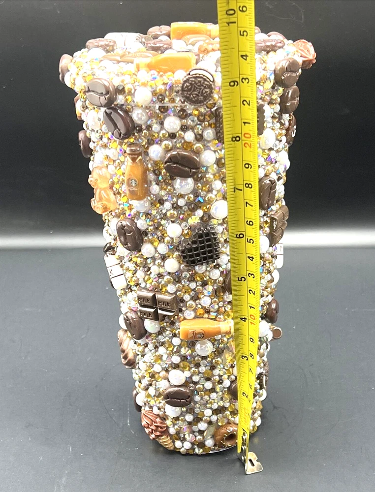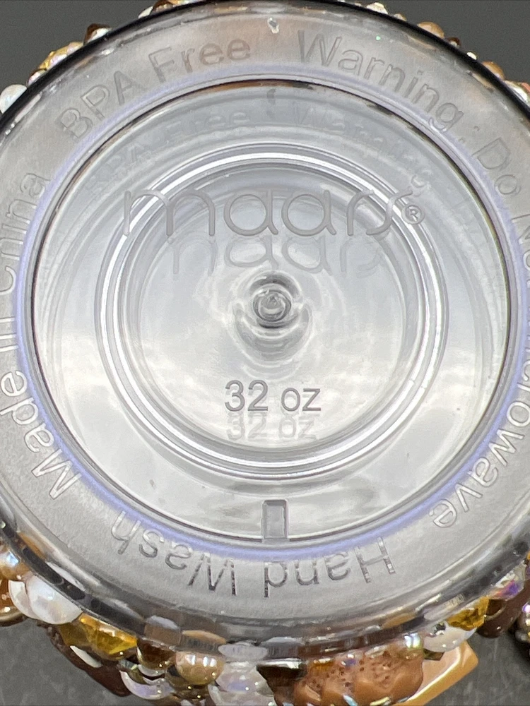 This Maars Drinkware Travel Tumbler is perfect for coffee or hot chocolate on the go. The 32 oz. tumbler is made of durable, double wall acrylic and features a twist lid for secure sipping. It stands at about 9 inches tall and is about 5 inches wide. The clear tumbler is hand decorated with a mocha and chocolate theme, making it a great addition to any kitchen or travel collection. The tumbler also boasts insulation, ensuring that your beverages stay hot or cold for longer periods of time. This item is perfect for those who want to enjoy their favorite drinks while on the go. This cup has not been used . I think it is more of a decoration but I am sure you could use if if you wanted and would make a fun gift . I will pack with care and get it to you ASAP Thanks for looking