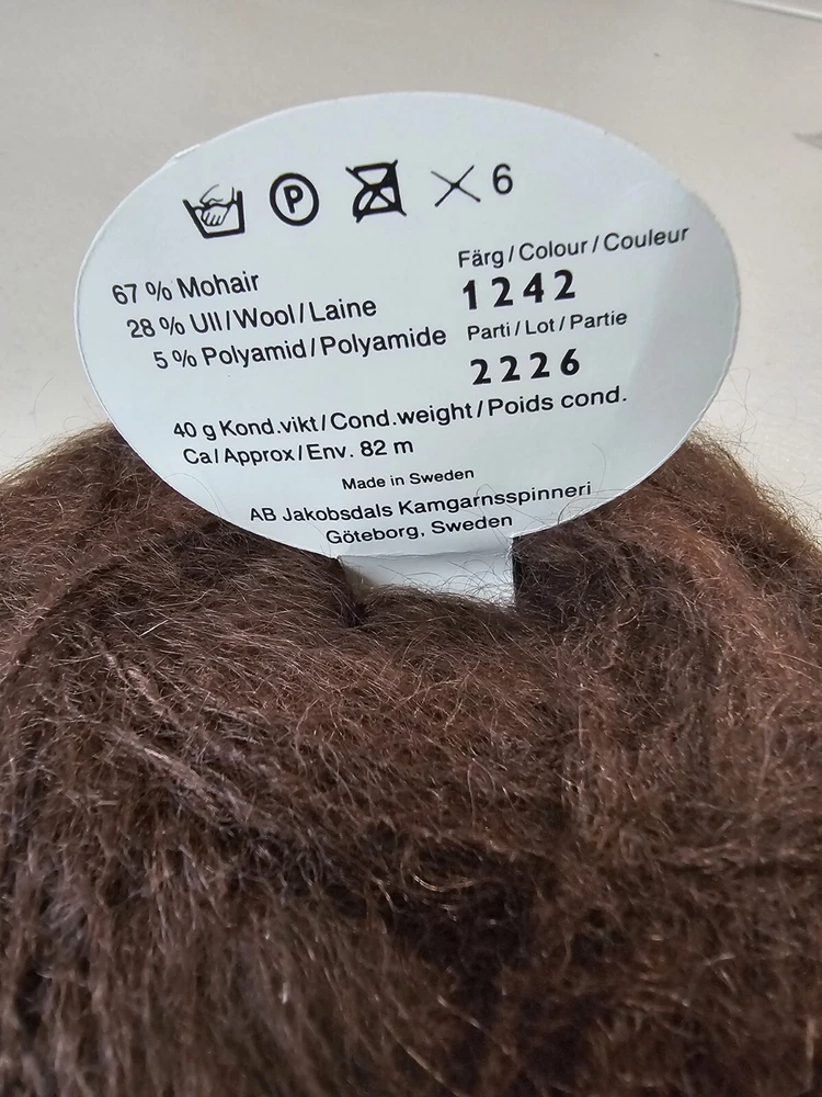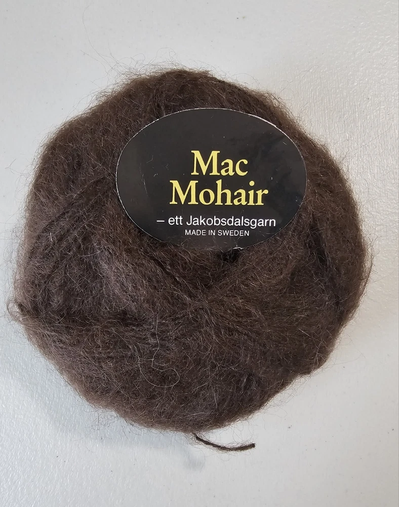 One 40 g brown Mac Mohair yarn made in Italy. Approximately 82 M. 67% Mohair 28% Wool 5% Polyamid Returns accepted within 30 days in same condition as purchased. Buyer pays return shipping. Shipping USPS ground
