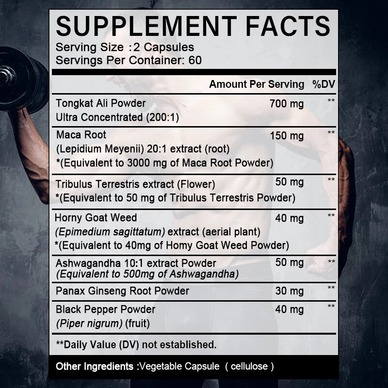 eBay Maca Relieve Stress Sexual Desire Ginseng Male Energy for Men 120 Capsules Key Features: Improve strength and endurance, build muscle Description: 💥 The highest formula of Tonga Extract – equivalent to 700 mg – for super-powerful benefits in just one capsule per day. All the high-quality herbs in this supplement can help increase your energy, stamina, and workout performance throughout the day.💥 The highest formula of Herbal Extract – equivalent to 700 mg – for super-powerful benefits in just one capsule per day. All the high-quality herbs in this supplement can help increase your energy, stamina, and workout performance throughout the day. 💥7-in-1 Powerful Maca: Special formula contains 7 high-quality herbs, including Epimedium, Maca Root, Ashwagandha and Tribulus. 💥Energy Booster: Super concentrated Maca extract can effectively and quickly increase your strength and Maca . You can enjoy this daily supplement to maintain good health and enhance your workout performance. 💥Energy Booster: Super concentrated Tongkat extract can effectively and quickly increase your strength and endurance. You can enjoy this daily supplement to maintain good health and enhance your workout performance. How to take: Take 1-2 capsules with meals or within 1 hour after meals, no more than 4 capsules per day. Storage: After opening, please seal and store in a cool place away from direct sunlight. Notice: Please keep out of reach of children. Before taking dietary supplements, consult a physician, physical therapist, or other qualified professional. Shipping Returns FeEDBACK cONTACT US pAYMENT Shipping All the items will be dispatched within 4 business day after the payment is clear. We are not responsible for any custom duty or import tax. Returns 1. If you need return, please contact us with Email before open a case, let us know the detailed problem and send us some pictures for confirmation. 2. All returned items must be in the original packaging and provide us tracking number, specific reason for the returns. fEEDbACK Customer satisfaction is very important to us. If you have any problem with your order,please contact us and we will do our best to make you satisfied, please do not leave a negative feedback before we resolve your problem. We guarantee that your issue will be solved quickly. As long as you are happy with your purchase of , please leave us a positive feedback. Your feedback is very important to us it affects our search placement on eBay. cONTACT US If you have any queries, please contact us via ebay. We usually respond within 12 hours on weekdays. PaYMENT eBay Accepts The Following Payment Methods: 1.Visa 2.Mastercard 3.PayPal 4.Apple Pay 5.Google Pay 6.American Express Card Document