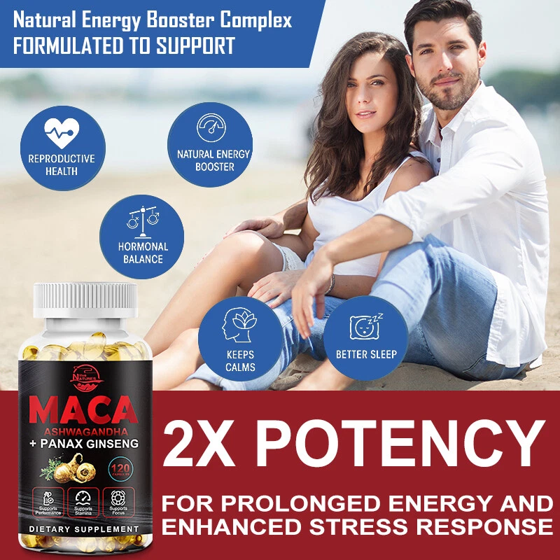 Maca Root,Ashwagandha,Panax Ginseng Extract Organic Male Enhancing 120 Capsules