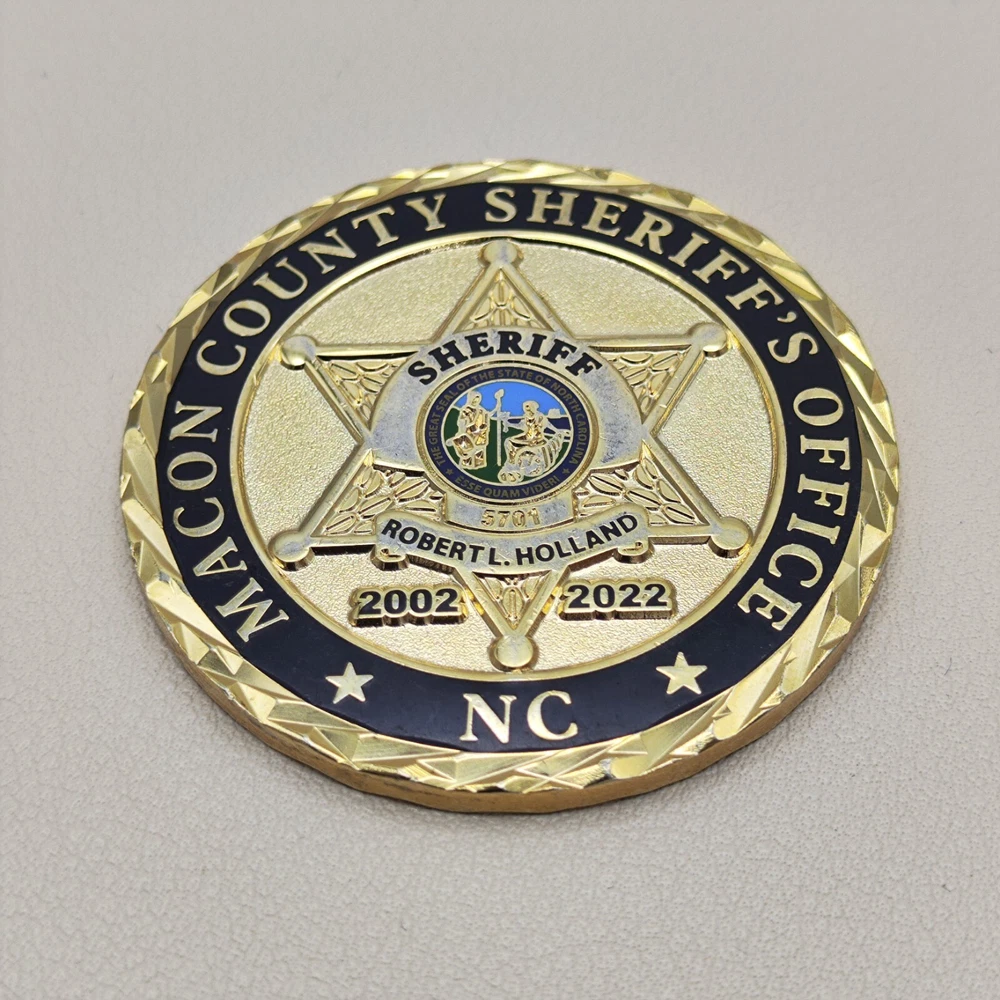 TITLE: Macon County North Carolina Sheriff Office Sheriff Challenge Coin SIZE : Measures Approx 1.76" Used coins are inevitably flawed please see pictures PAYMENT : We support multiple payment methods and ship within 5 days of payment SHIPPING : We offer free shipping, and your purchase will be carefully packaged and sent to you with tracking information through eBay SERVICES : You can contact us at any time if you have any questions, We will get back to you as soon as possible to solve your problem If you are not satisfied with your purchase for any reason, Please contact us before leaving neutral or negative feedback and we will solve the problem properly for you