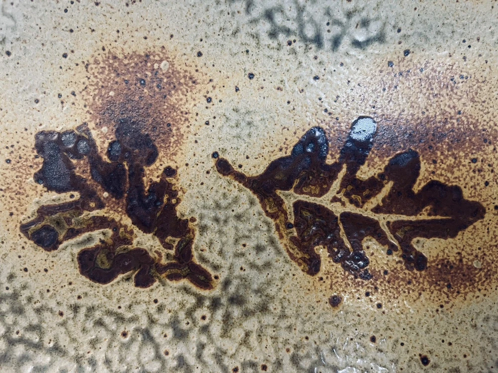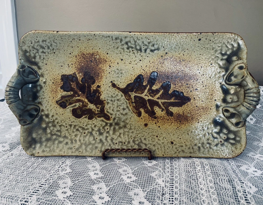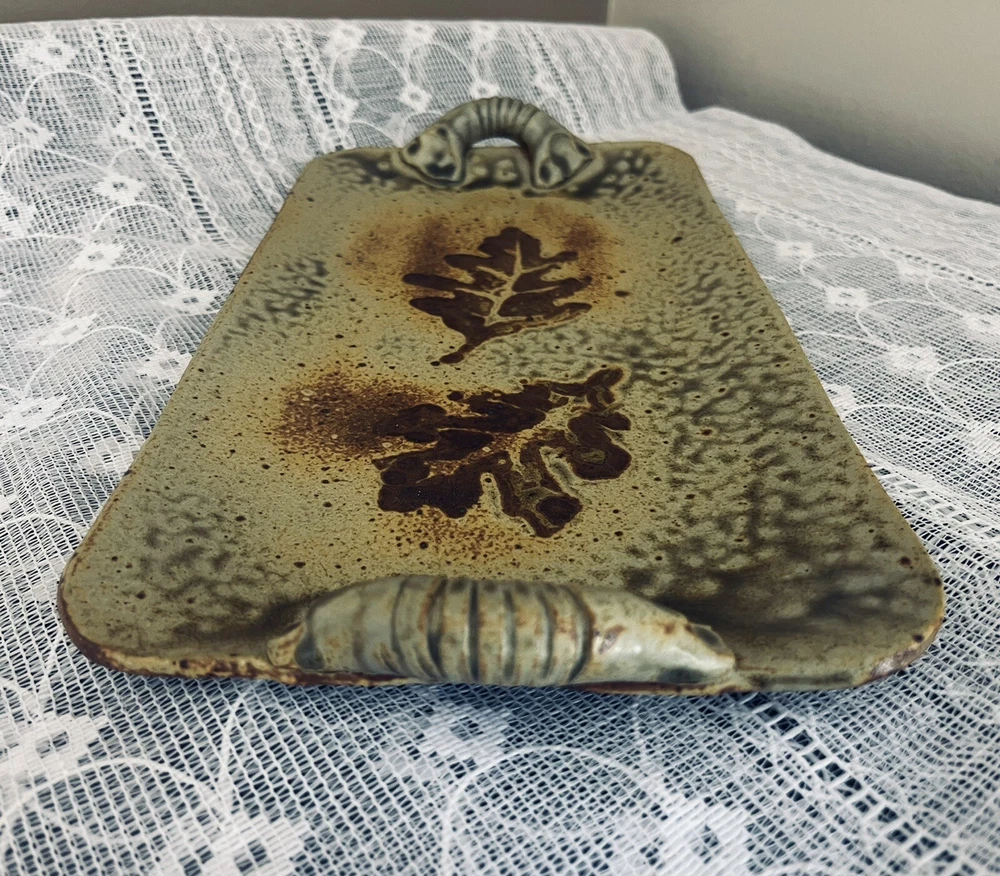 Rectangular tray 12.5” x 7” - Mad Dabbers Pottery Rectangular Tray Handmade - North Carolina Leaves. Haywood County NC. DSCLO