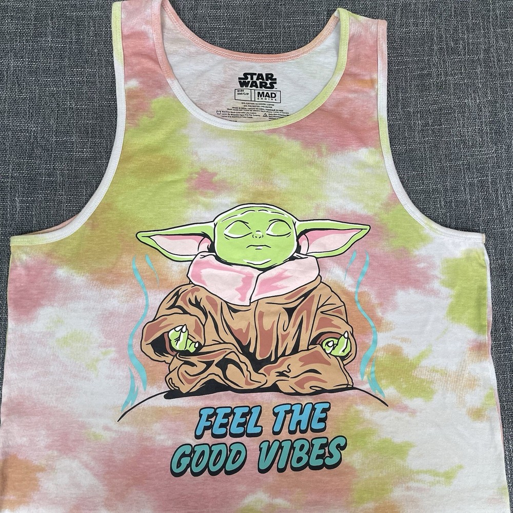 Mad Engine Tank Top Stars Wars Graphic Logo Pink/Green/White Tie Dye Small Size