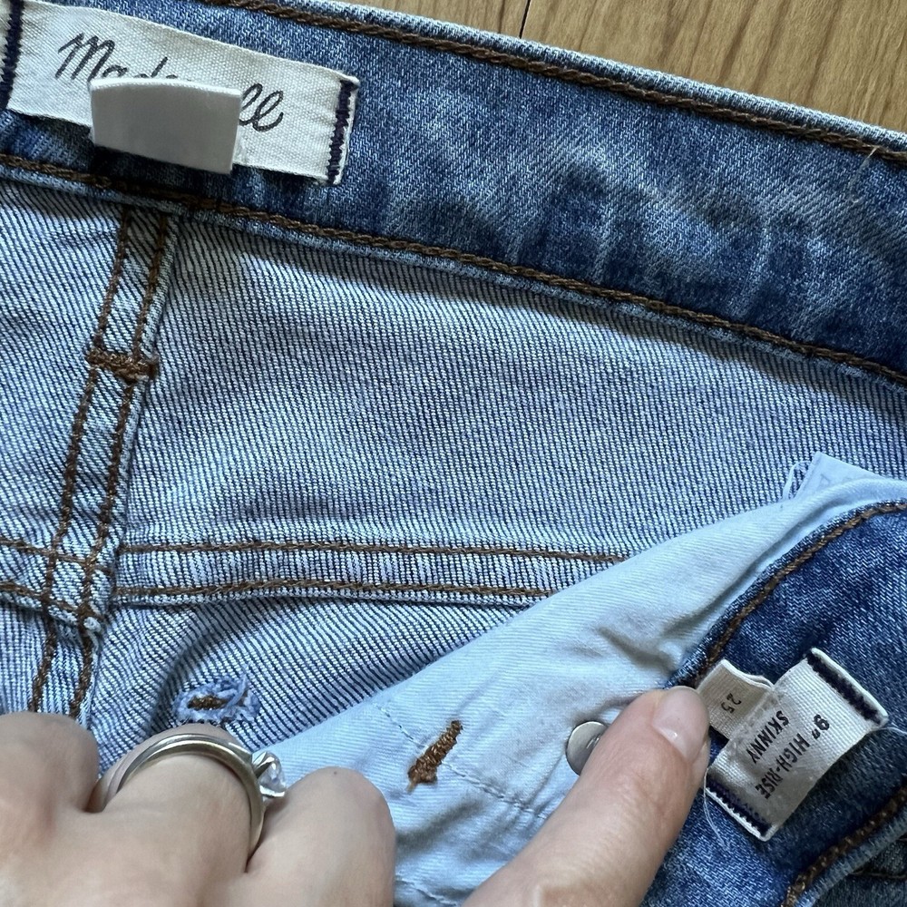 Elevate your style with these Madewell 9" High-Rise Skinny Crop Jeans in a beautiful blue color. These jeans are perfect for any occasion and feature a stylish destructed-hem edition that adds a unique touch to your outfit. The high-rise design and skinny fit provide a flattering silhouette, while the crop length is perfect for showing off your favorite footwear. These Madewell jeans are made from high-quality materials and boast a range of features, including a regular size type, a 24-inch inseam, and a high rise of greater than 10.5 inches. They are ideal for women who love skinny jeans and want to make a fashion statement. Don't miss out on these must-have jeans, perfect for any wardrobe. Madewell 9" High-Rise Skinny Crop Jeans: Destructed-Hem Edition 🟣Size 25 Front rise: 10" Inseam: 24" Waist 15” Lean and legs-for-days sexy, our cropped 9" high-rise jeans. Plus, this perfectly worn-in pair has cool destructed hems. Sit above hip, fitted through hip and thigh, with a skinny leg. Premium 98% cotton/2% polyurethane denim from Machine wash. Import. ☯️Excellent Condition, pre-owned ☯️No smoke, no pets home! ☯️Great addition to your wardrobe! ☯️Fast Order Processing!📦 💟✨Happy Shopping!✨💟 ✨Welcome my closet MargaryShopUSA✨