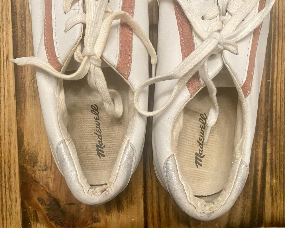 Madewell Delia Sidewalk Low Top Sneaker, White Leather, Womens 10 Mens 8.5. Condition is Pre-owned. Shipped with USPS Ground Advantage.