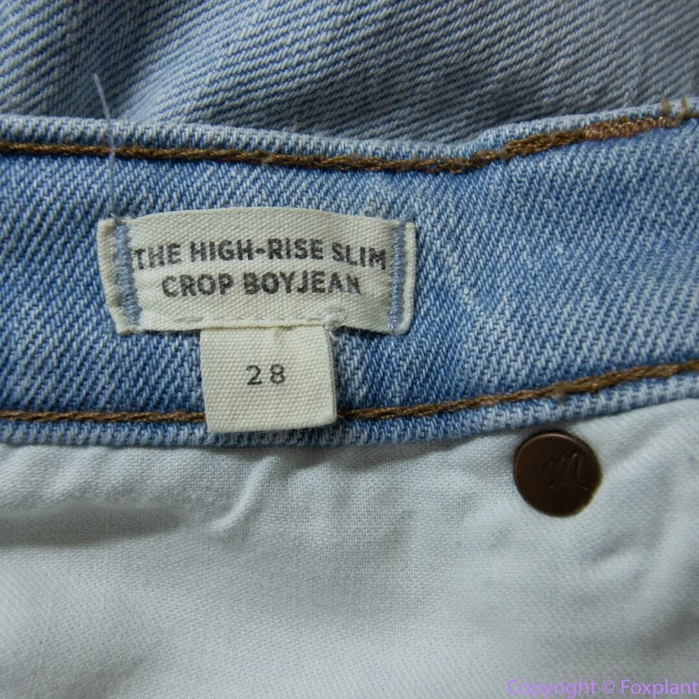 Madewell The High-Rise Slim Crop Boyjean in Dumas Wash: Ripped Edition,size 28 Easy in the (high) waist, our signature boyfriend fit in a light indigo wash with rips at the knees has a slim-but-still-relaxed cropped leg. Think a vintage men's jean cut to flatter you. Made of our best-selling Heritage Stretch denim that has an old-school look and a touch of give for a perfectly broken-in feel 99% cotton/1% spandex comfort stretch denim. Ripped knees. MC556 Size 28 , approximate laid flat measurements: Waist (without dip, the front and the back of the waistband aligned): 16'' Rise:11 1/2 '' Inseam(soft measuring tape along the inseam ): 26 3/4'' Leg opening: 7'' Measurements provided as a courtesy, not a guarantee of fit. Please note: some light stains as shown. Smoke free, pet free home. Actual colors may vary due to differences in lightings and computer monitors. 3118