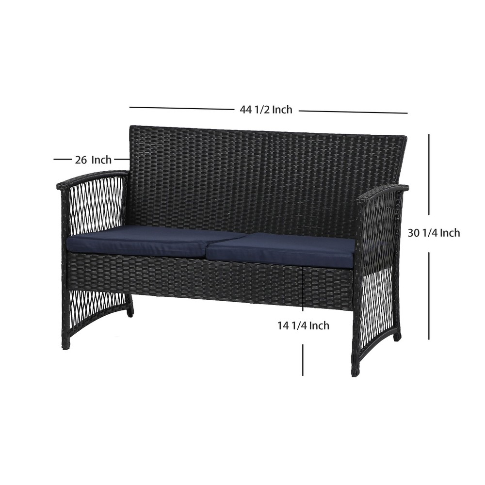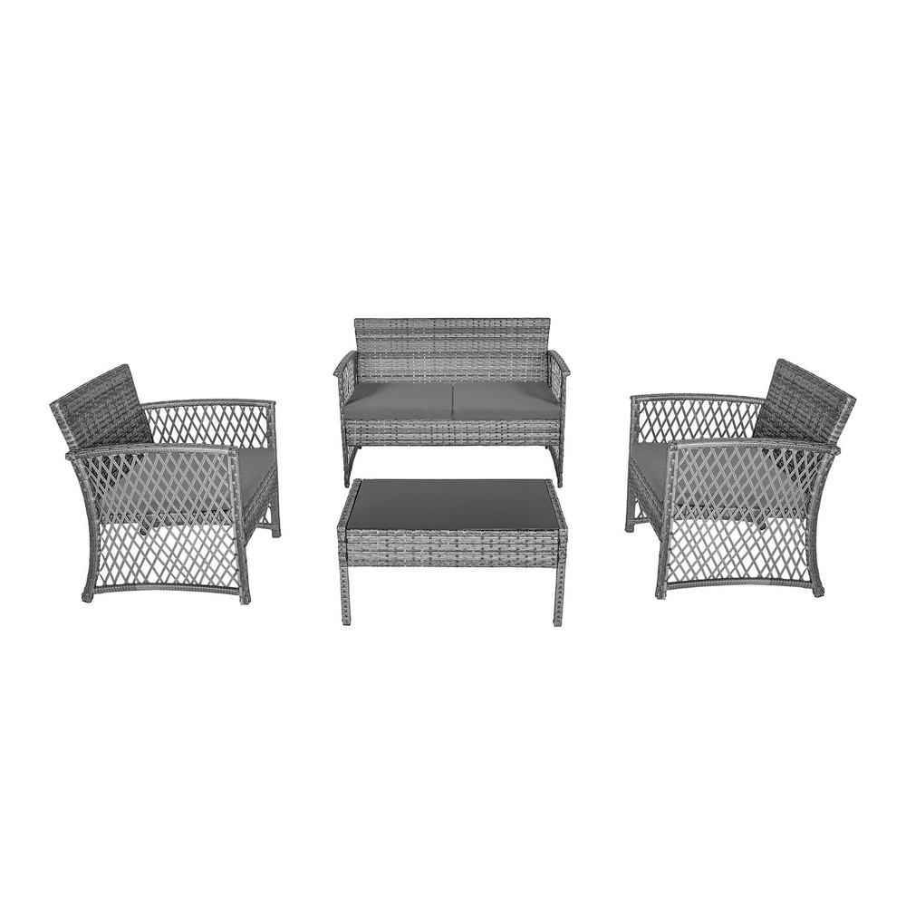 Elevate your outdoor space with the Madison 4-Piece Rattan Patio Furniture Chat Set. Constructed with a rust-resistant steel frame and all-weather resin woven wicker, this set is built to withstand the elements while providing comfort and style. The fade-resistant, UV and water-resistant cushions are filled with foam for ultimate relaxation and come with removable covers for easy cleaning. Choose from a variety of colors to match your design style. Assembly is a breeze with easy upkeep.Features: 1 loveseat, 2 arm chairs, and 1 coffee table Rust-resistant steel frame with powder coating All-weather resin woven wicker Fade-resistant, UV and water-resistant foam-filled cushions with removable covers Available in multiple colors Zipper cushions for easy cleaning Easy upkeep and Free Shipping Over $49.99* Details Madison Outdoor 4-Piece Rattan Patio Furniture Chat Set Product Description: Elevate your outdoor space with the Madison 4-Piece Rattan Patio Furniture Chat Set. Constructed with a rust-resistant steel frame and all-weather resin woven wicker, this set is built to withstand the elements while providing comfort and style. The fade-resistant, UV and water-resistant cushions are filled with foam for ultimate relaxation and come with removable covers for easy cleaning. Choose from a variety of colors to match your design style. Assembly is a breeze with easy upkeep. Features: 1 loveseat, 2 arm chairs, and 1 coffee table Rust-resistant steel frame with powder coating All-weather resin woven wicker Fade-resistant, UV and water-resistant foam-filled cushions with removable covers Available in multiple colors Zipper cushions for easy cleaning Easy upkeep and assembly Dimensions: Sofa46 inches wide x 25 inches deep x 30 inches high Arm chair24 inches wide x 25 inches deep x 30 inches high Coffee Table dimensions31 inches wide x 18 inches deep x 18 inches high