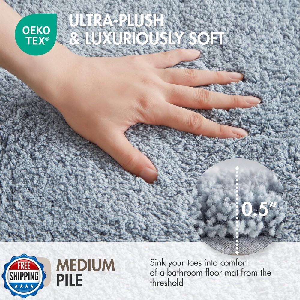 Madison Park Evan 100% Cotton Bathroom Rug Non Slip Backing-Luxrurious Tufted Plush Bath Mat Absorbent, Quick Dry, Spa Design Shower Room Décor, 24x40, Blue Features Made from 100% cotton for a perfect balance of comfort and style to your space. Due to the nature of the fabric, some linting may occur initially, allow 3-5 washes to subside. Over time some threads may come loose; simply trim any loose threads as needed The plush medium pile weight ensures pure soft comfort for your feet, with high absorbency and a cool, striking contrast white border design for a clean hotel look right in your own home Premium shower rug that is Oeko-Tex certified to be free of any chemicals and harmful substance. And the non-skid latex backing helps keep the rug in place for better safety What's in the box? 1 Bath Rug: Size 24"W x 40"L. Medium pile 0.5" high Care instructions: Machine wash cold seperately, on gentle/delicate cycle. Use mild detergent and non-chlorine bleach when needed. Tumble dry low. Some linting may occur due to nature of fabric. Allow 3-5 washes to subside. Do not iron. Do not dry clean Shipping Free & Fast Shipping: We offer free shipping to most of the USA with a normal delivery time of 3-7 days. However, due to the current situation, additional delivery time (up to 3 weeks) may be required for some items. Alternative Carriers: We may use alternative carriers (e.g., USPS, FedEx, UPS) to ensure your package arrives safely and on time. Due to the use of multiple carriers, we are unable to provide a tracking number automatically. Handling Time: Orders are processed and shipped within 1-2 business days of receiving cleared payment. Shipping Restrictions: Shipping to Alaska, Hawaii, Puerto Rico, Guam, and other US territories may incur shipping charges or delivery restrictions. Please contact us before ordering, or your order can be refunded/cancelled. State Restrictions: Certain items may not be shipped to California due to state regulations. Contact for Tracking Updates: If you require tracking updates or have any concerns about the delivery of your order, please feel free to contact us, and we will be happy to assist you. Return Policy 30-Day Hassle-Free Returns: If you are not completely satisfied with your purchase, you can return the item for free within 30 days of receiving it for a full refund or exchange. Easy Return Process: Contact us, and we will provide you with a prepaid return shipping label and detailed instructions. No Restocking Fee: There are no restocking fees for returns. However, the buyer is responsible for return shipping costs if the return is not due to a seller"s error. Refund Processing: Refunds will be processed within 1 business day of receiving the returned item in its original condition. Feedback Your feedback is extremely important to us. We strive to provide the best products and customer service possible. If you are satisfied with your purchase, please take a moment to leave us a positive review. If you have any concerns or issues with your order, please contact us before leaving negative feedback. We are committed to resolving any problems and ensuring your satisfaction. Contact Us If you have any questions or concerns, please feel free to reach out to our customer support team. You can contact us through the eBay messaging system. We are available Monday to Friday, 9:00 am to 5:00 pm EST, and we will do our best to respond to your inquiry within 24 hours. Thank you for supporting our small family business!