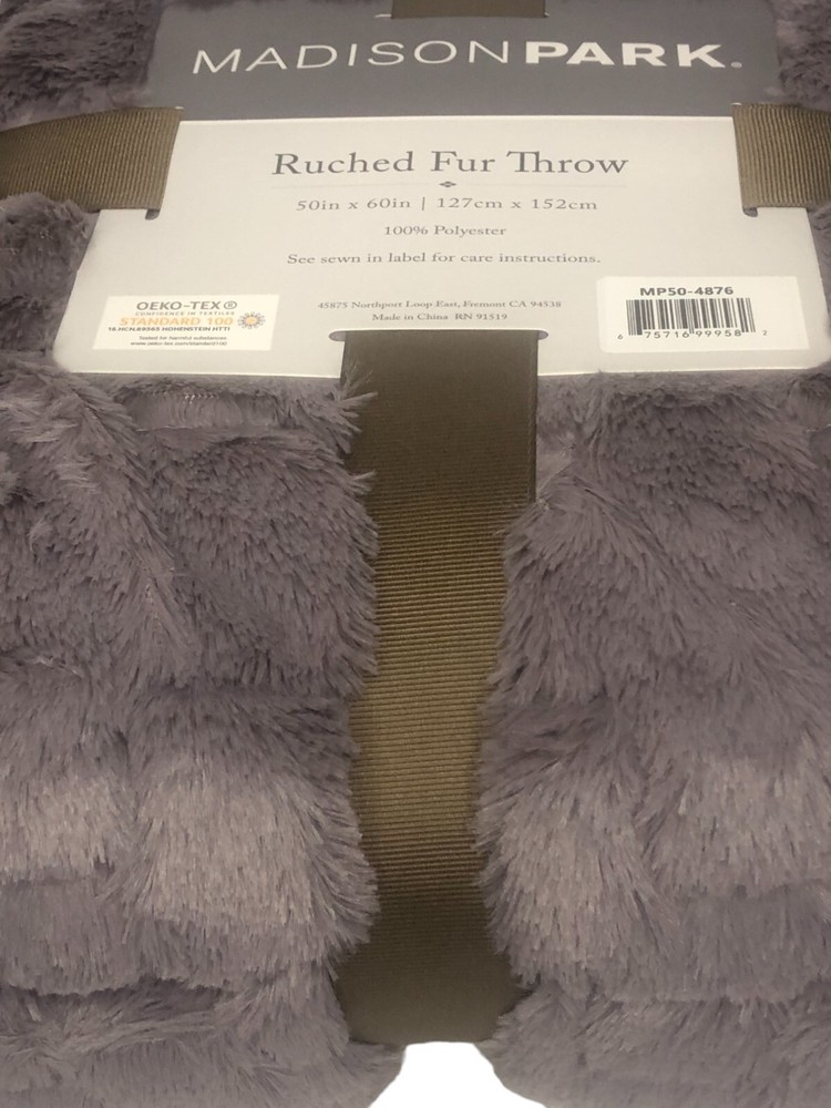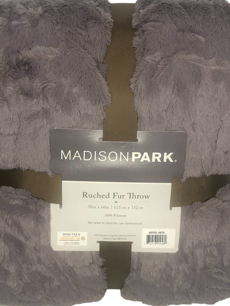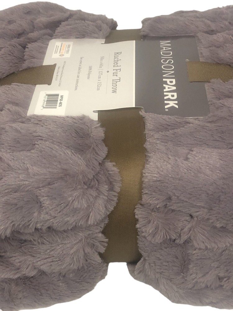 Madison Park LAVENDER Ultra Soft Ruched Faux Fur Throw Blanket New with Tags. FEATURES 50" x 60" Ruched Design Ultra soft faux mink reverse Fluffy and luxurious Coordinating Madison Park ruched faux fur euro throw pillow sold separately CONSTRUCTION & CARE Polyester Machine wash Imported Actual item Photos. Don't hesitate to contact us before purchasing if you have questions about the item's condition and shipping cost. If you receive an item with a noticeable flaw not shown in the photos, please contact us before leaving feedback. We strive to describe all items thoroughly and accurately. Please ask any questions you have before offering or buying. We will do our best to return your messages within 24 hours. Happy Shopping !