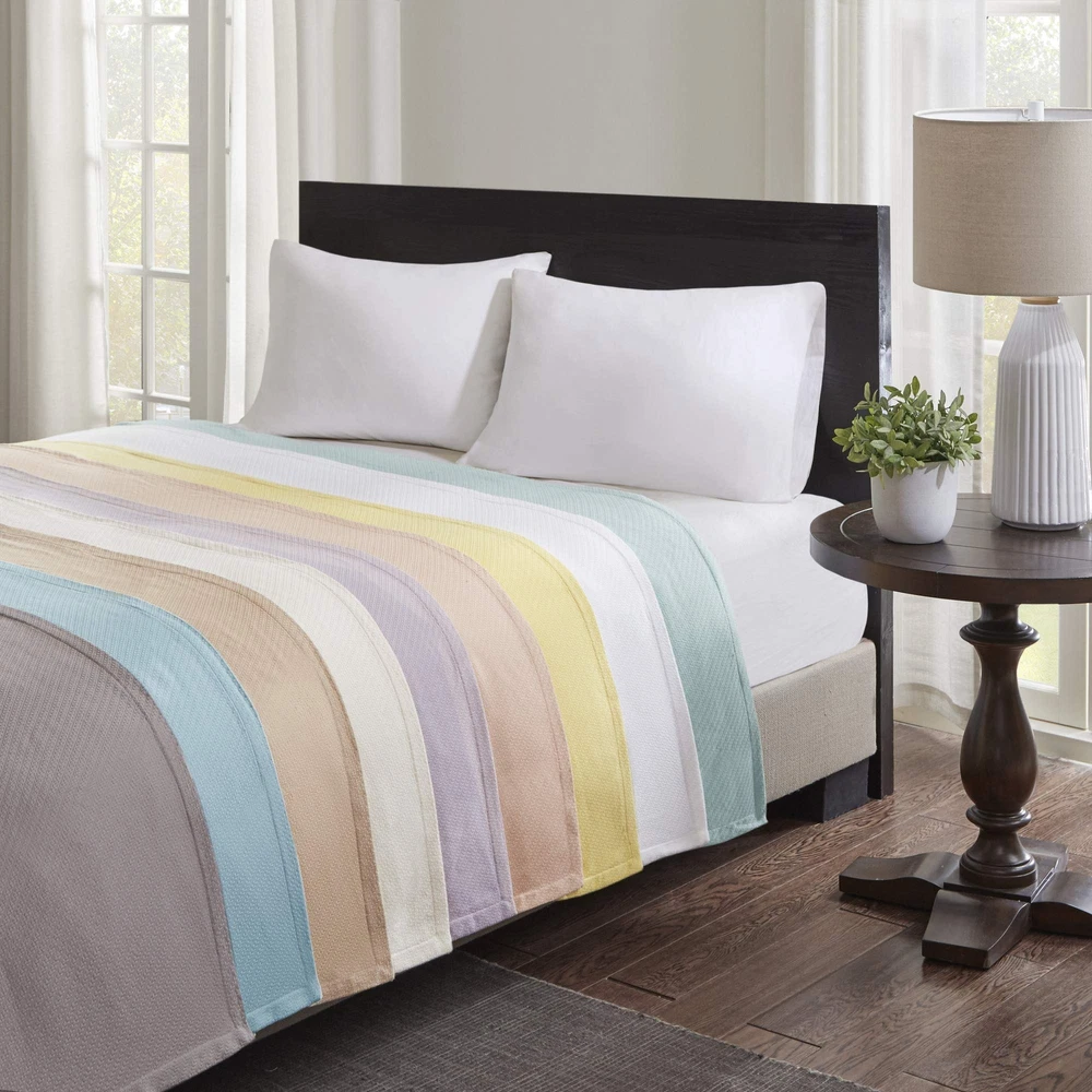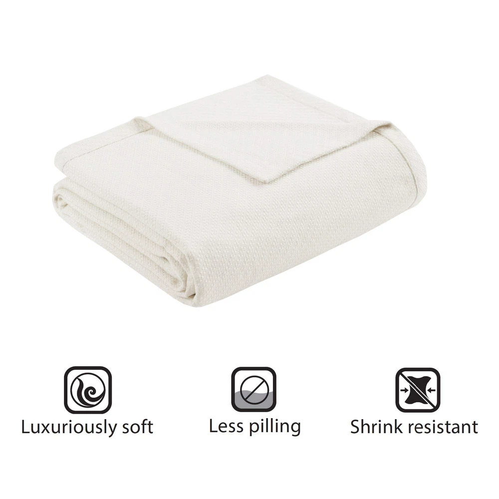 Cozy up in one of the softest cotton blankets on the market. We take the highest quality cotton and spin it into a very smooth and soft material that we call Liquid Cotton. This blanket's cotton material virtually eliminates pilling to give you a lasting blanket that you will not have to replace year after year. Our Liquid Cotton blanket has reduced shrinkage compared to other cotton blankets. Cotton naturally wicks away moisture and is breathable which helps regulate your temperature at night, giving you year round comfort. This blanket is also OEKO-TEX certified, meaning it does not contain any harmful substances or chemicals to ensure quality comfort and wellness. A classic cotton comfort that comes in vibrant color; our liquid cotton blanket is a premium 100% cotton blanket that's particularly ring spun and woven into a smooth patterned blanket. This is a perfect summer blanket featuring exceptionally soft premium cotton that naturally wicks away moisture, and breathable giving you year round comfort. Our liquid cotton virtually eliminates shrinkage and pilling, giving you a lasting confidence in quality and durability in the years to come. 1 Full/Queen Size Blanket: 90"W x 90"L For you convenicend it's machine wash cold, gently and separately. Do not bleach. Tumble dry low. Remove promptly.