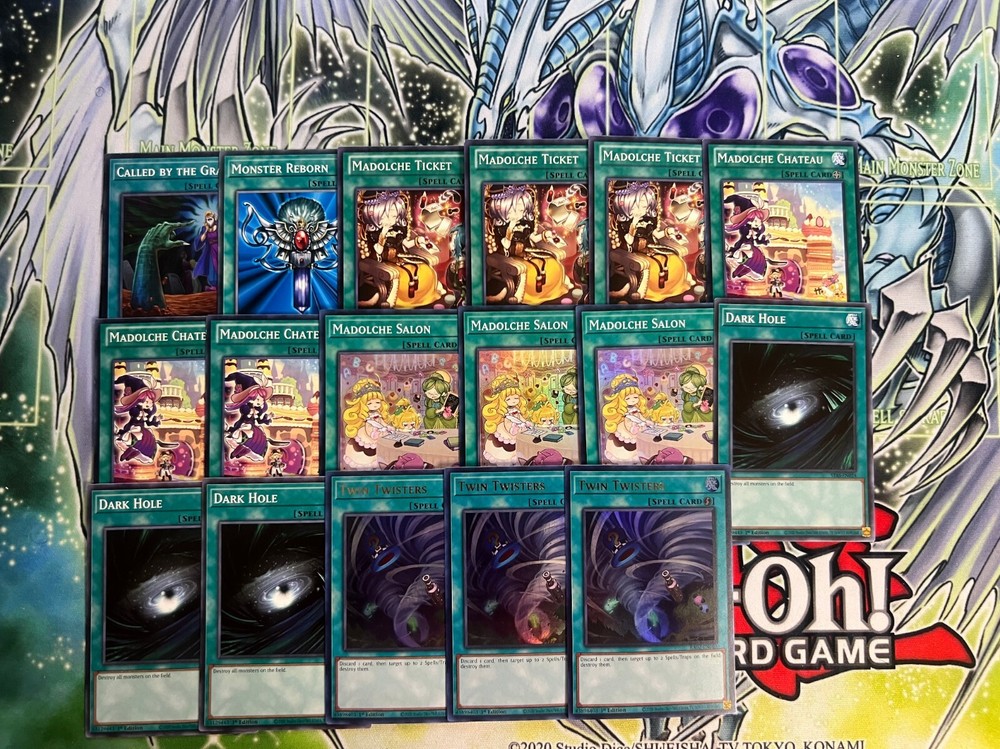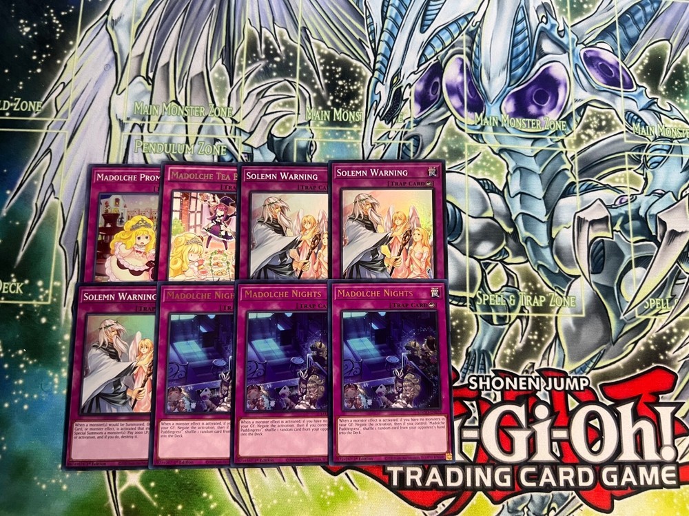 Hello! You are purchasing the deck list below, the cards will be English, real, and near mint to light play condition at worst. All decks are built with the lowest rarities for cards in mind to keep the price of the deck low and affordable for all duelists! Some cards may be in speed duel printing if this is the cheapest available copy of the card, but do not worry these are real cards and legal for tournament use! Purchase with confidence and safety! As an added bonus one pack of card sleeves will be included with your deck! Thanks again and good luck dueling! Now here's the decklist; Monsters: 1| Madolche Chouxvalier 1| Madolche Puddingcess 3| Ash Blossom & Joyous Spring 3| Effect Veiler 3| Madolche Messengelato 3| Madolche Anjelly 3| Madolche Hootcake 3| Madolche Magileine Spells; 1| Monster Reborn 1| Called By The Grave 3| Twin Twisters 3| Dark Hole 3| Madolche Salon 3| Madolche Chateau 3| Madolche Ticket Traps: 1| Madolche Tea Break 1| Madolche Promenade 3| Madolche Nights 3| Solemn Warning Extra Deck; 1| Akashic Magician 1| Gaia Saber, The Lightning Shadow 1| Maestroke The Symphony Djinn 1| Number S39: Utopia The Lightning 1| Number 39: Utopia 1| Gagaga Cowboy 1| Steelswarm Roach 1| Madolche Puddingcess Chocolat-A-La-Mode 2| Madolche Teacher Glassouffle 3| Madolche Queen Tiaramisu 3| Madolche Queen Tiarafraise